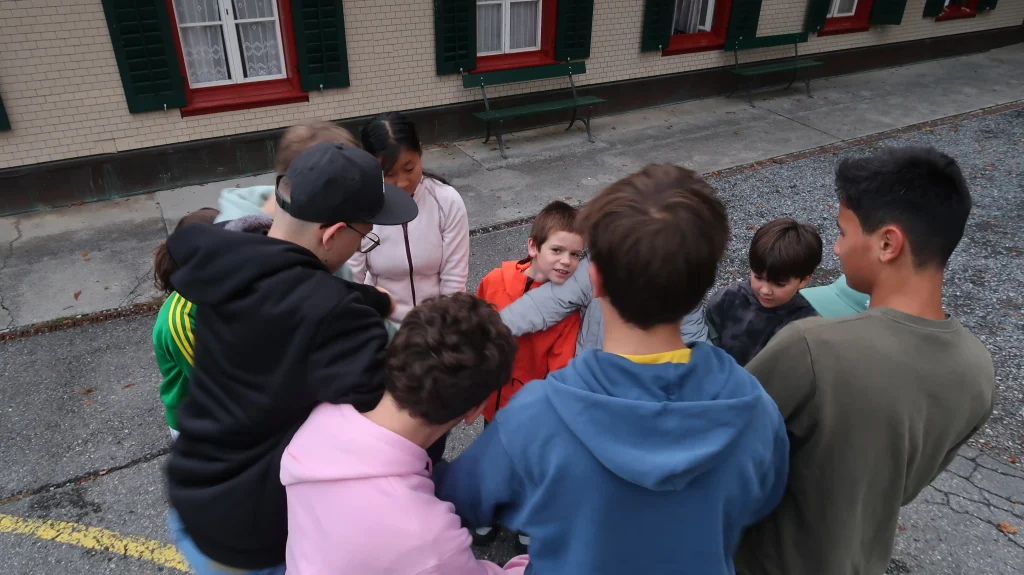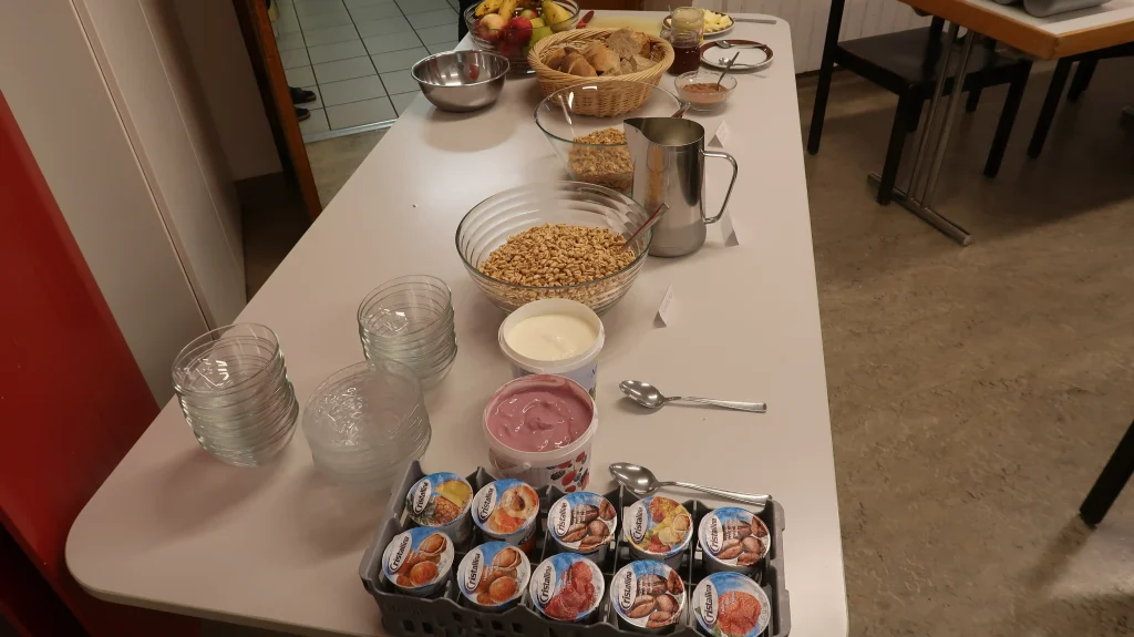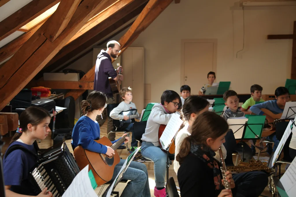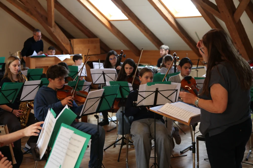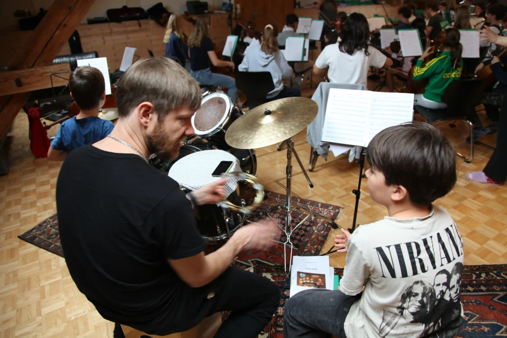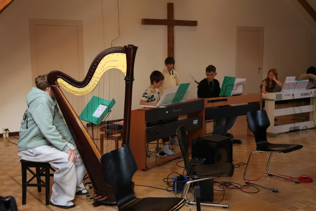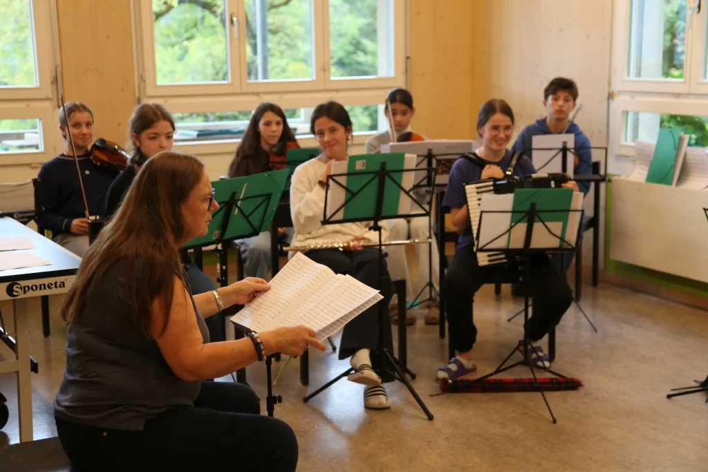 Eh Eho Eho, so tönte es um 07:30 aus dem Gang vor den Zimmern. Mit Pompeii von Bastille und anderen Liedern, wurde der erste Tag des Musiklagers gestartet. Mit einer Rekord-Anzahl von 24 Personen beim Morgensport wurde der noch müde Körper und Geist geweckt und für den Tag vorbereitet. Nach einem ausgiebigen Morgenessen, wurde dann erst mal mit einer Runde Gesang in die Musikblöcke gestartet.