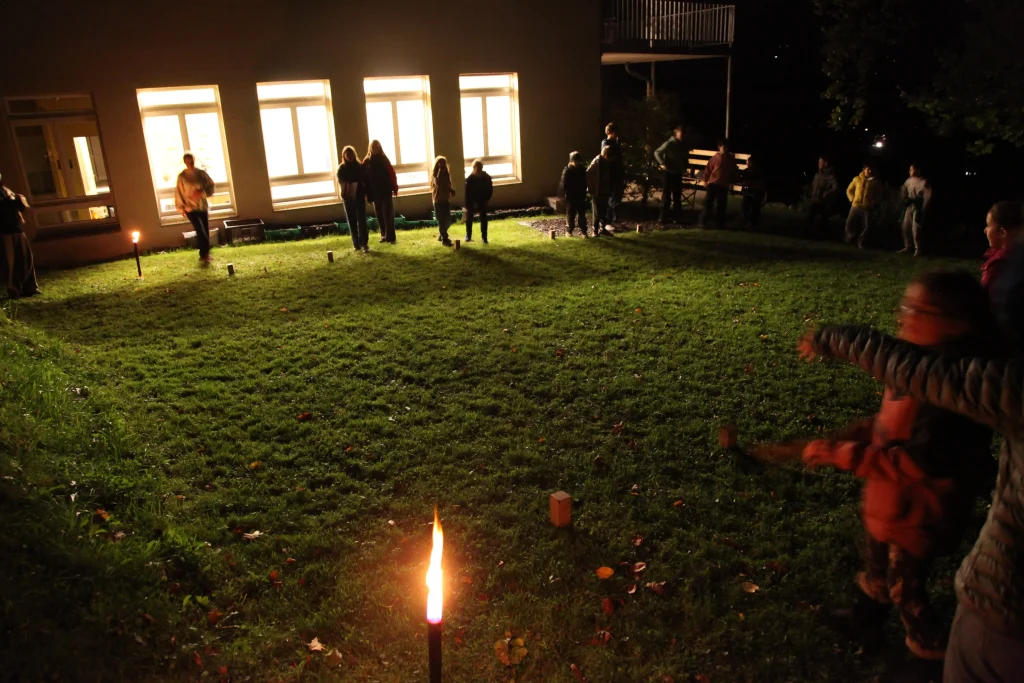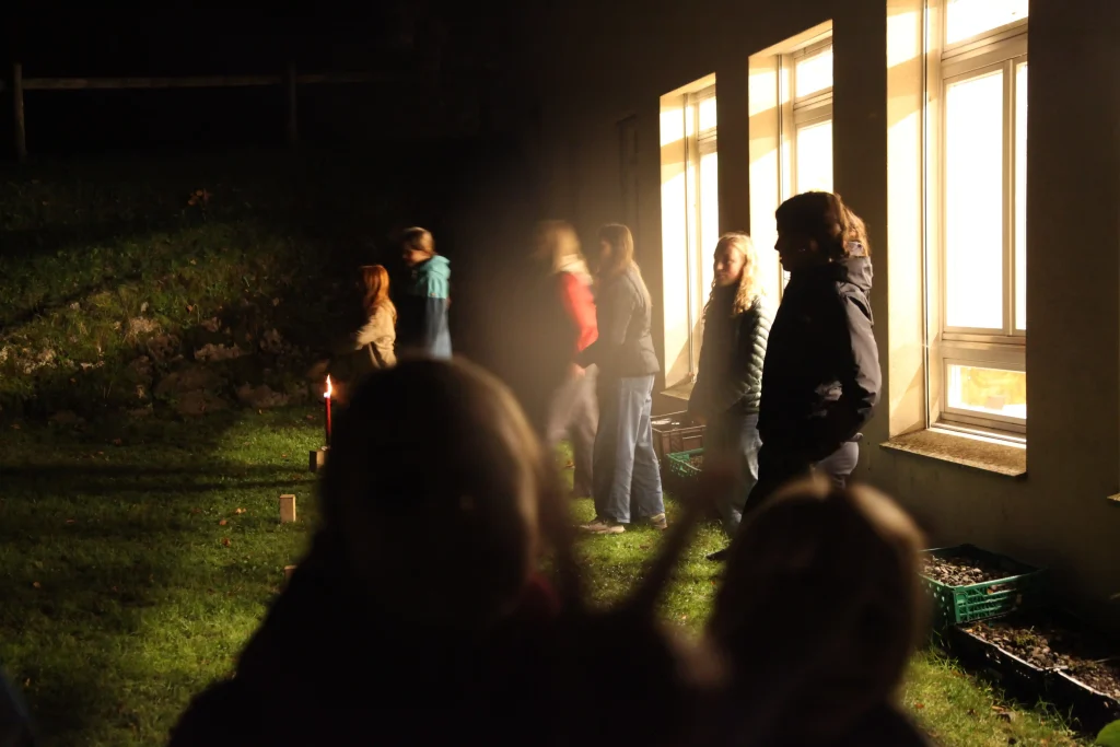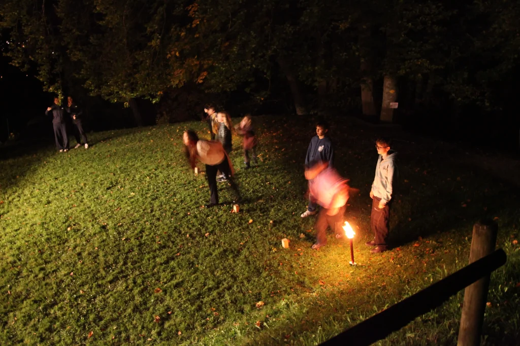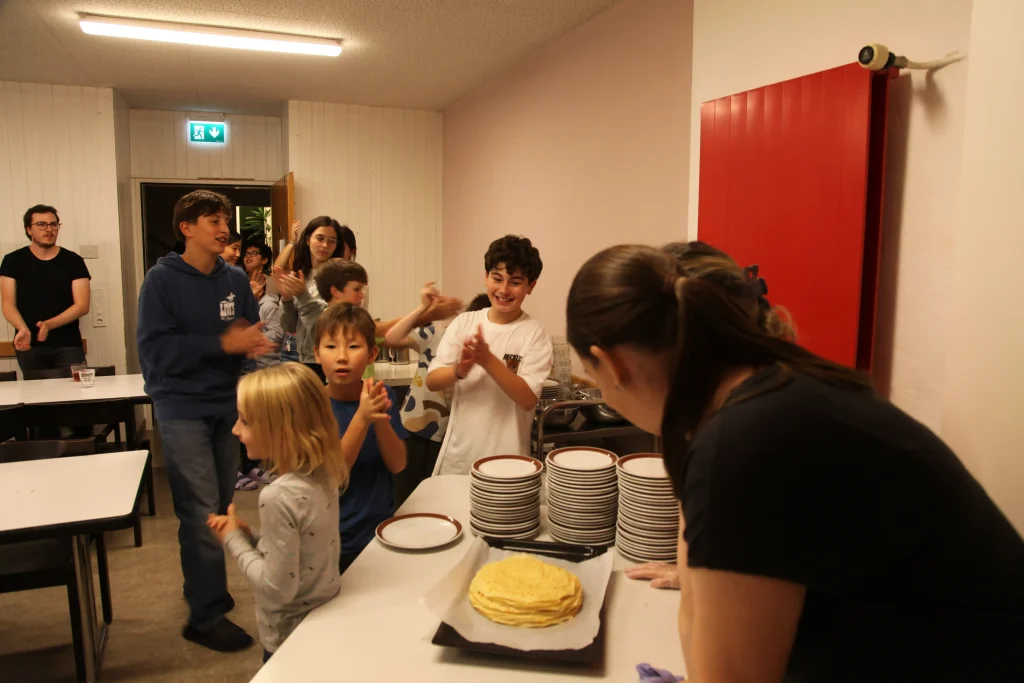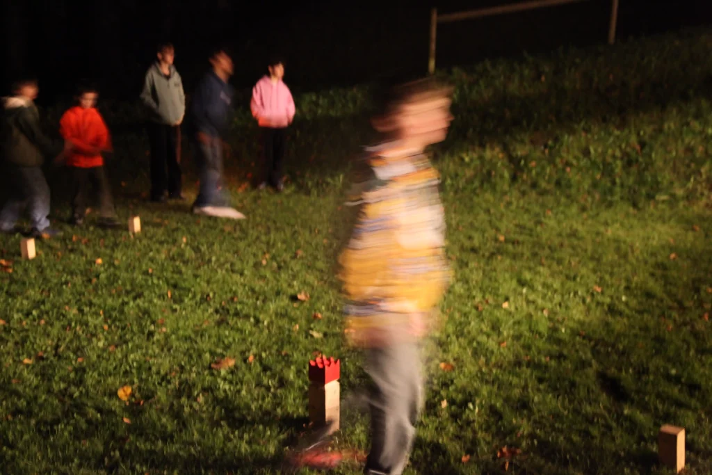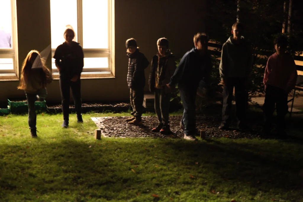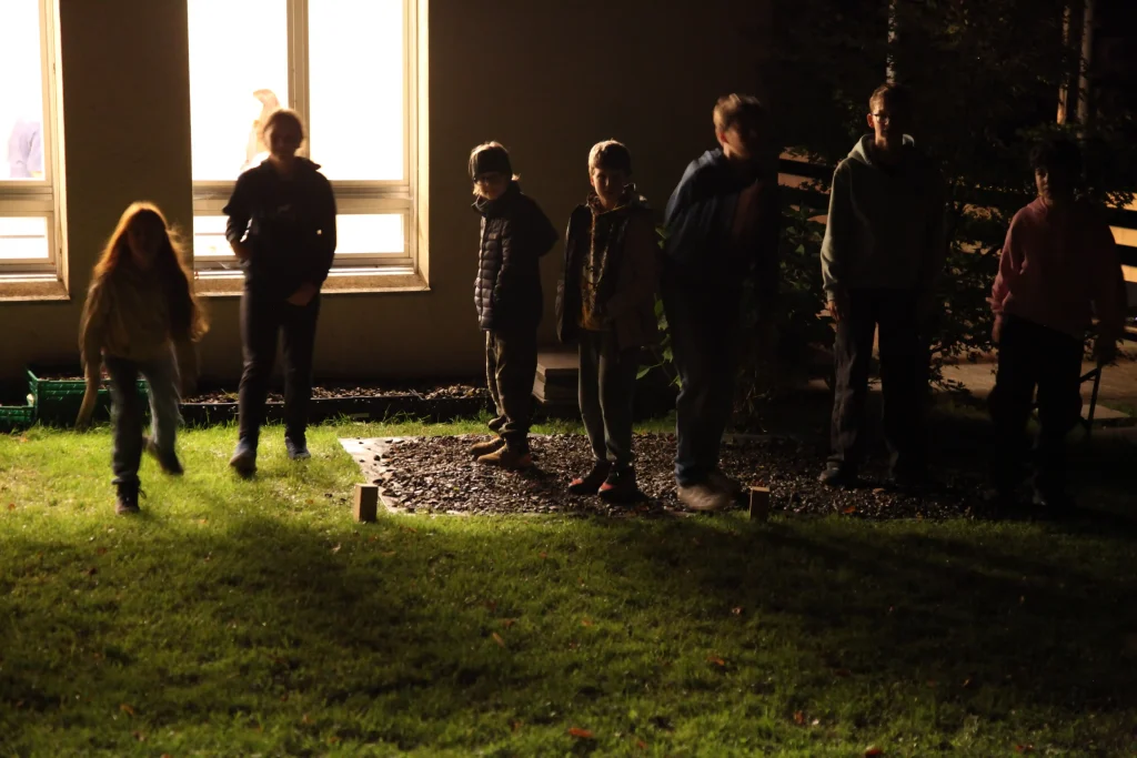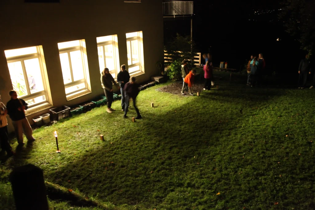 Aus den verschiedenen Zimmern klangen die Töne von Bastille, Patent Ochsner oder der Addams Family. Nach der ersehnten Handyzeit wurden wir verwöhnt von Pizza und Crêpes. Um 20:00 Uhr ging es dann für einige raus auf den Rasen, um möglichst viele Siege beim Kubb-Turnier zu holen. Mit Fackellicht und Sportsgeist wurde der Abend ausgeklungen.