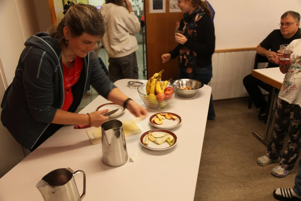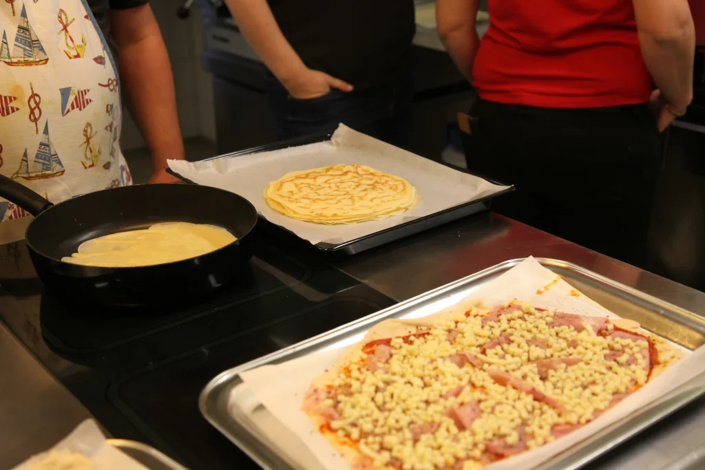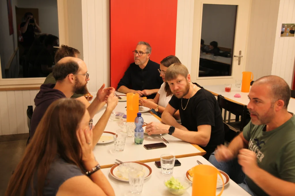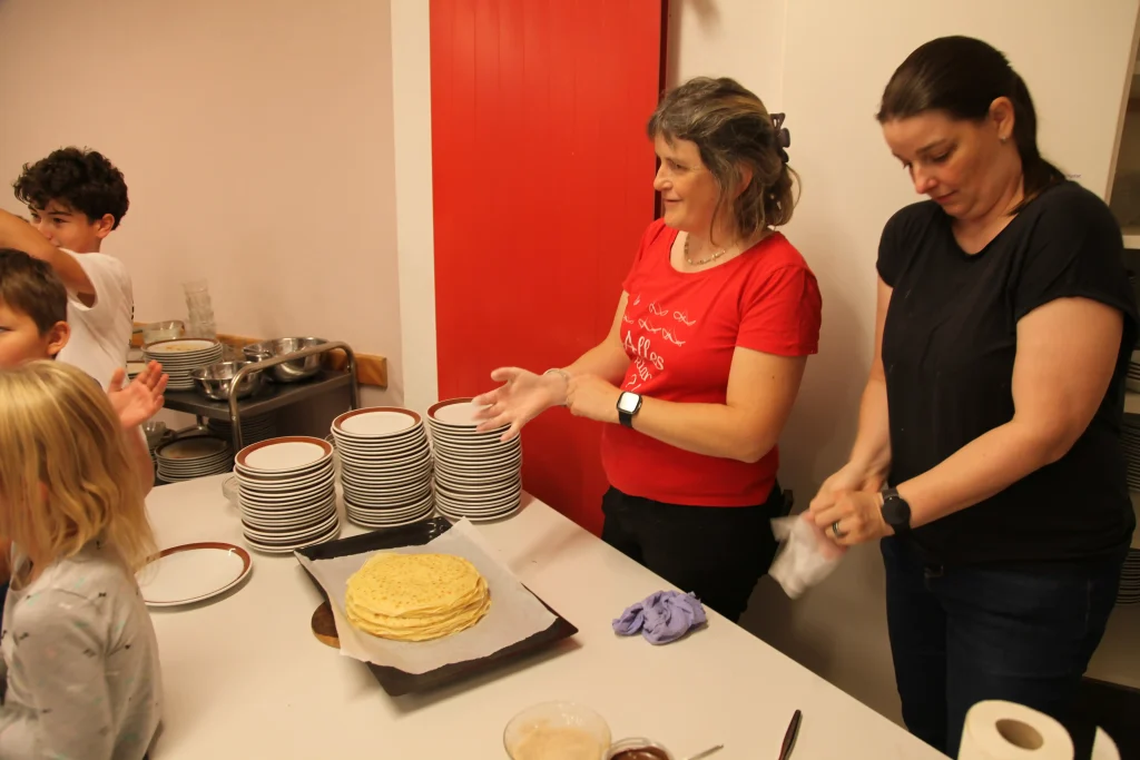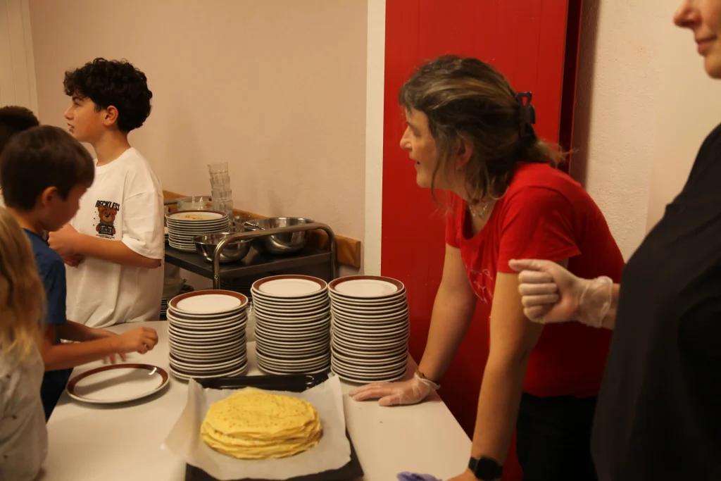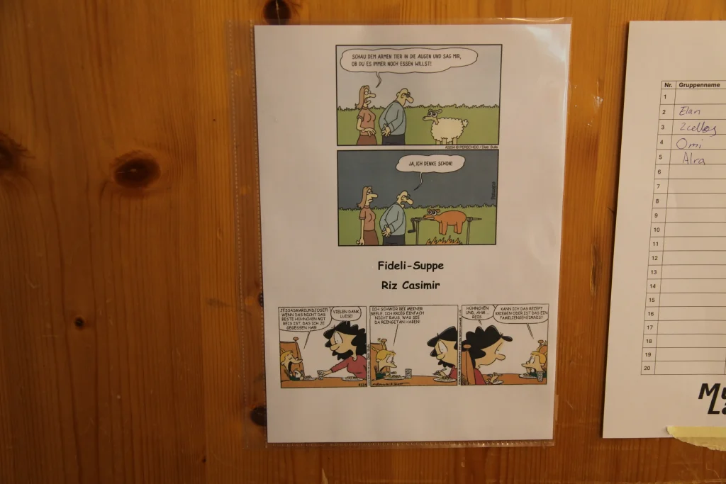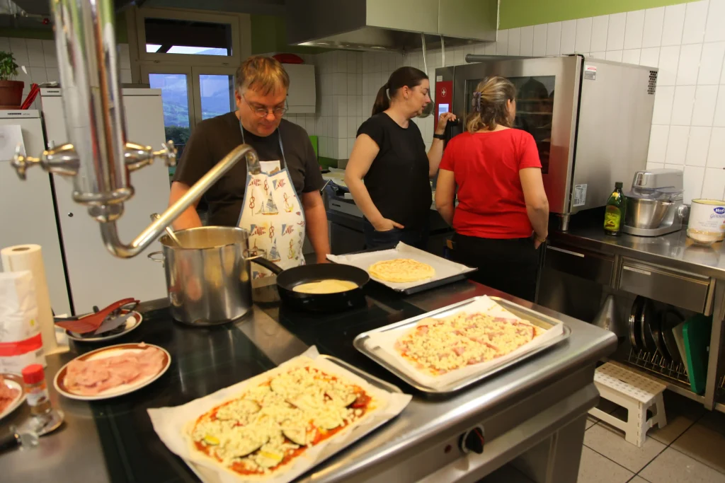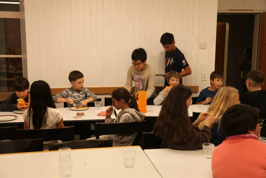 Aus den verschiedenen Zimmern klangen die Töne von Bastille, Patent Ochsner oder der Addams Family. Nach der ersehnten Handyzeit wurden wir verwöhnt von Pizza und Crêpes. Um 20:00 Uhr ging es dann für einige raus auf den Rasen, um möglichst viele Siege beim Kubb-Turnier zu holen. Mit Fackellicht und Sportsgeist wurde der Abend ausgeklungen.