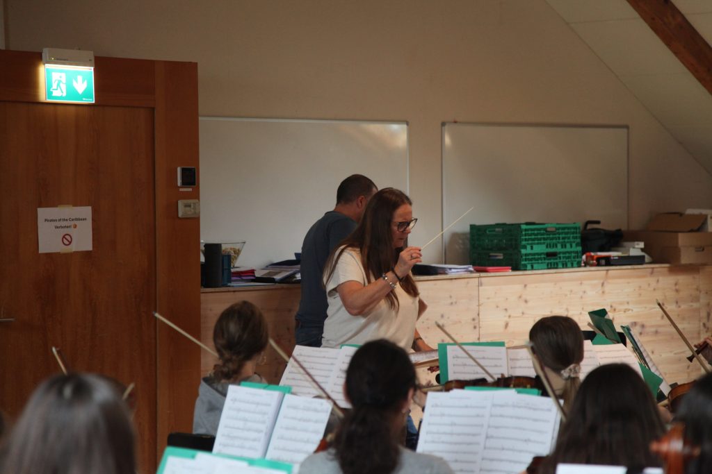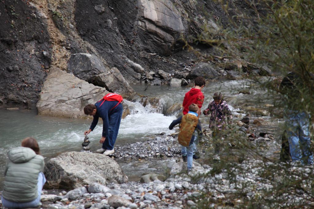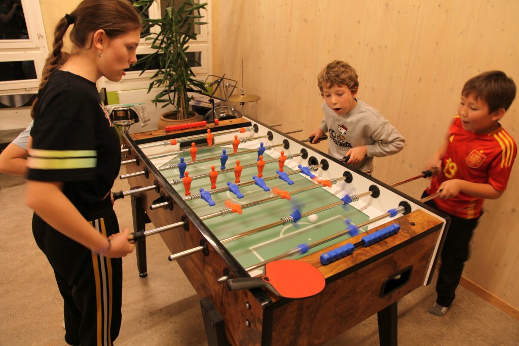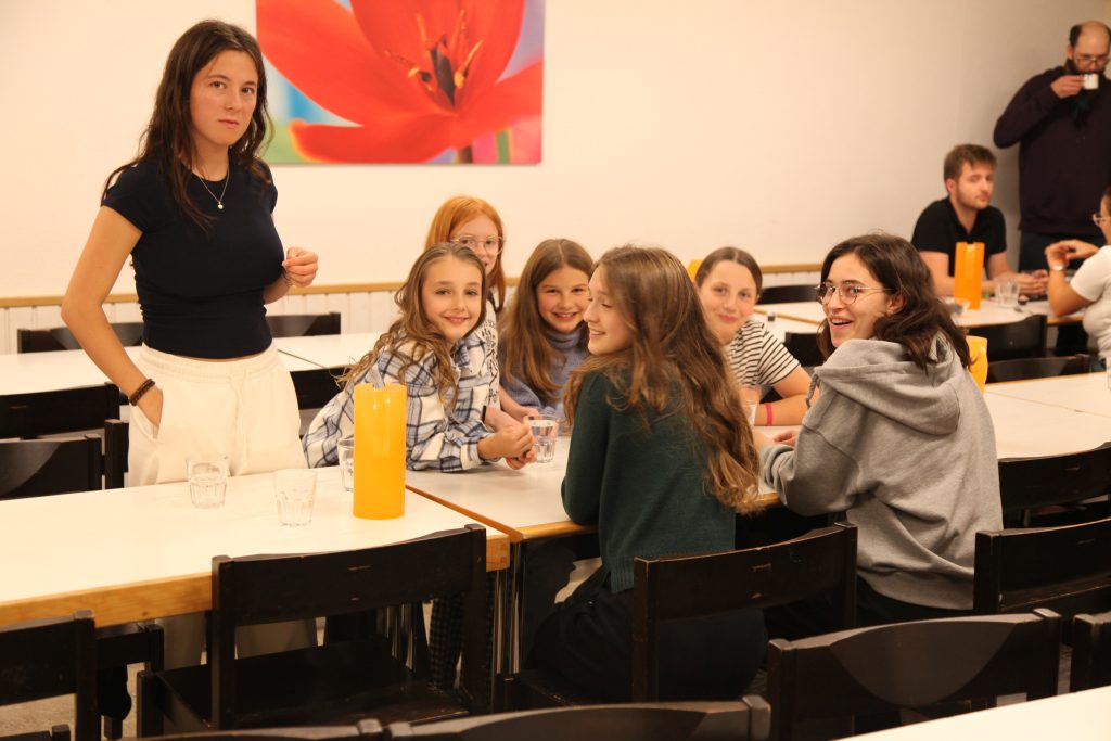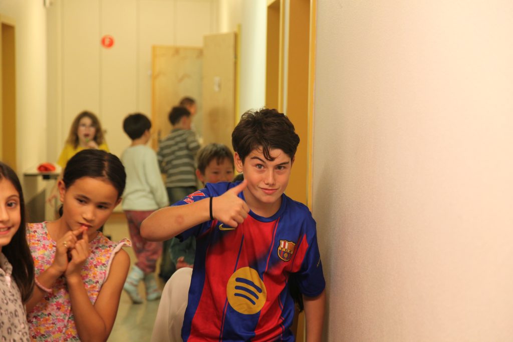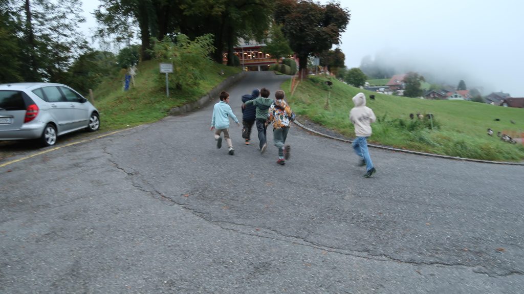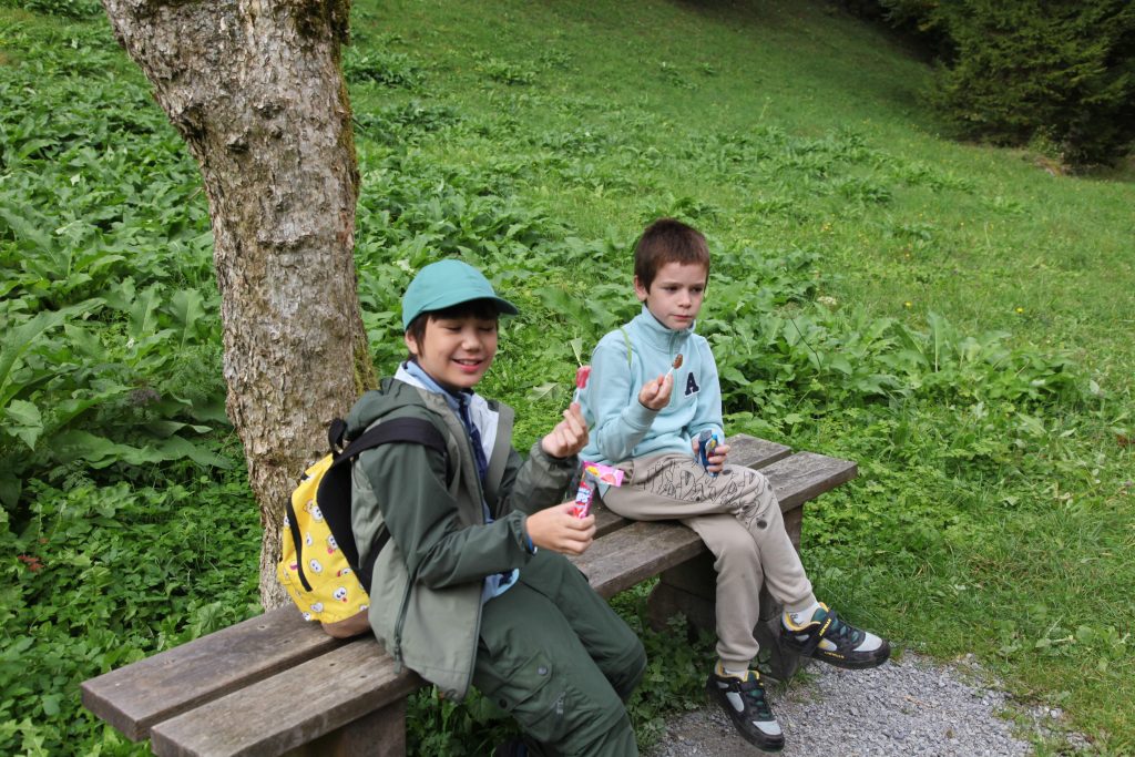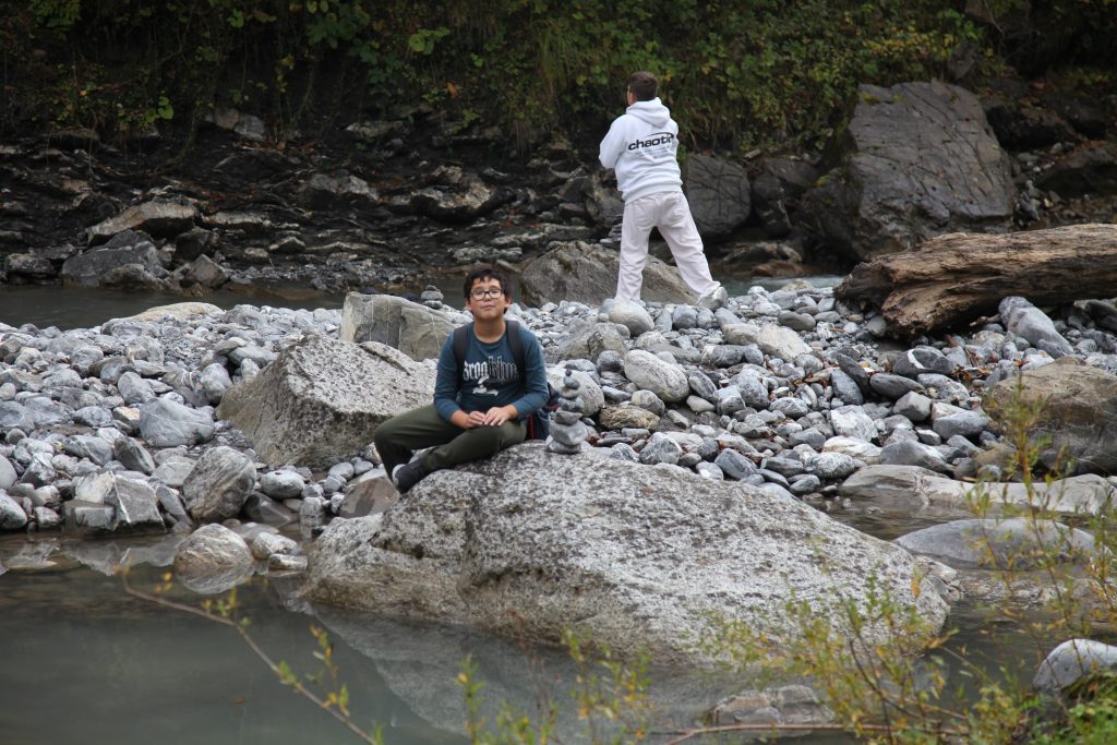 Wie gewohnt um 07:30 ertönte in den Gängen „laute“ Musik. Mit Final Countdown traf sich die 5-köpfige Morgensporttruppe vor dem Haus. Nach dem aufwärmen bevor verschiedene Spiele gespielt wurden, wurde auch „Barti“ die Chef-Ziege und seine Freunde begrüsst. Der musikalische Anfang der Probe wurde wieder mit verschiedenen Songs gestartet bevor die gestern in den Registern erprobten instrumentalen Stücke gemeinsam erarbeitet wurden. Es fügt sich langsam alles zusammen (ihr könnt euch auf den Samstag freuen!). Beim Mittagessen wurden wir mit Kartoffelstock und Fleisch- bzw. Gemüsebällchen verwöhnt. nach der Mittagspause versammelten wir uns mit unseren Instrumenten draussen für das Lagerfoto. Anschliessend gingen wir dann auf einen kleinen Ausflug Richtung Fluss. Auf dem Weg konnten wir die Unterkunft von Bruder Klaus und die Kapelle von Flüeli-Ranft ansehen. Am Fluss wurde dann fleissig Steine gestapelt und herumbalanciert (fast alle blieben trocken). Natürlich durfte auch der Besuch im Kiosk nicht fehlen um Snacks oder Souvenirs zu kaufen. Bis zum Abendessen wurde dann noch fleissig geübt oder Ping-Pong gespielt. Und nicht zu vergessen die ersehnte Handyzeit. Mit einer riesigen Auswahl an Grilliertem und zwei verschiedenen selbstgemachten Tiramisus wurden unsere Bäuche dann beim Abendessen bis oben gefüllt. Danach war der Abend offen für verschiedene Brettspiele, Uno oder Poker. Nachdem das Casino bankrott war, hat man sich dann auch schon wieder für die Nachtruhe vorbereitet. Morgen freuen wir uns auf den zweitletzten Tag des Musiklagers, wieder mit 4 Blöcken Musik.