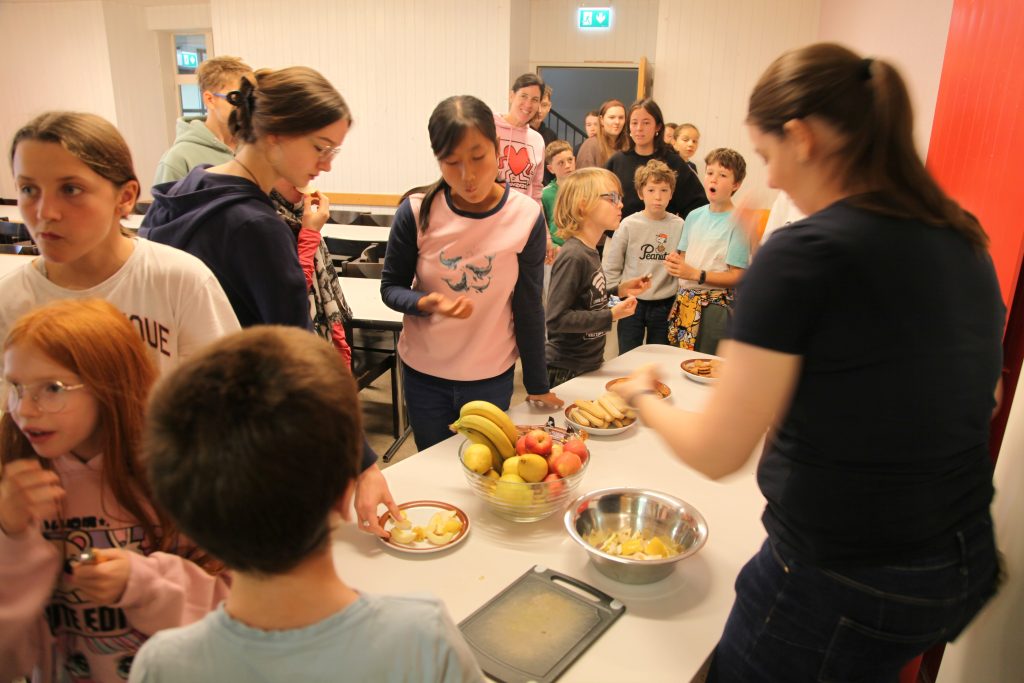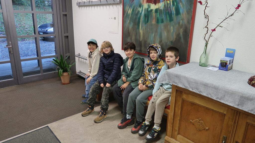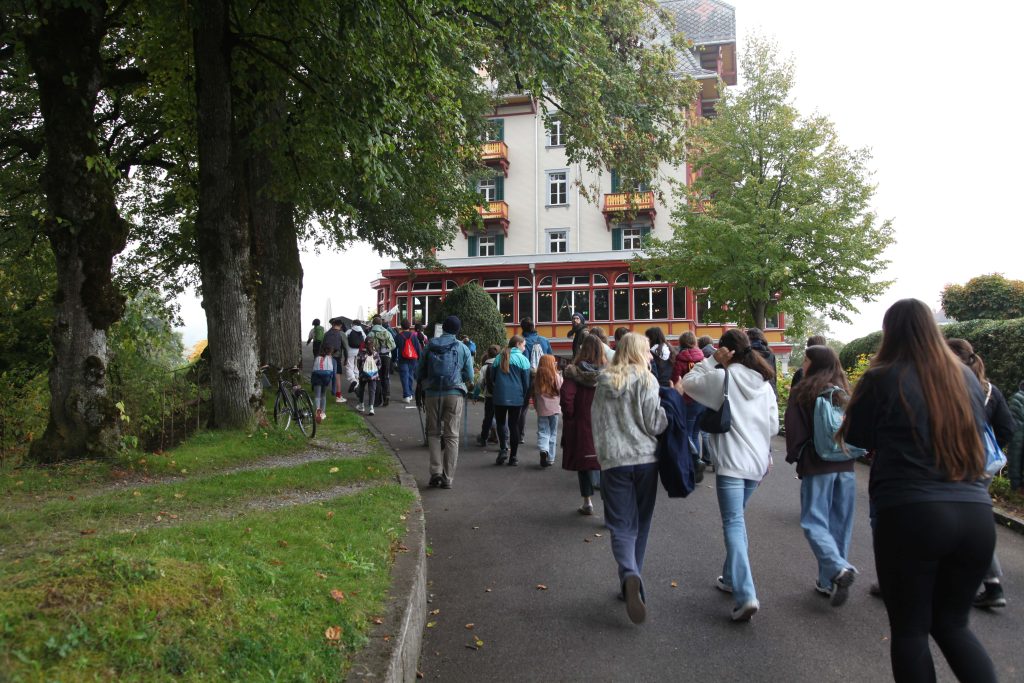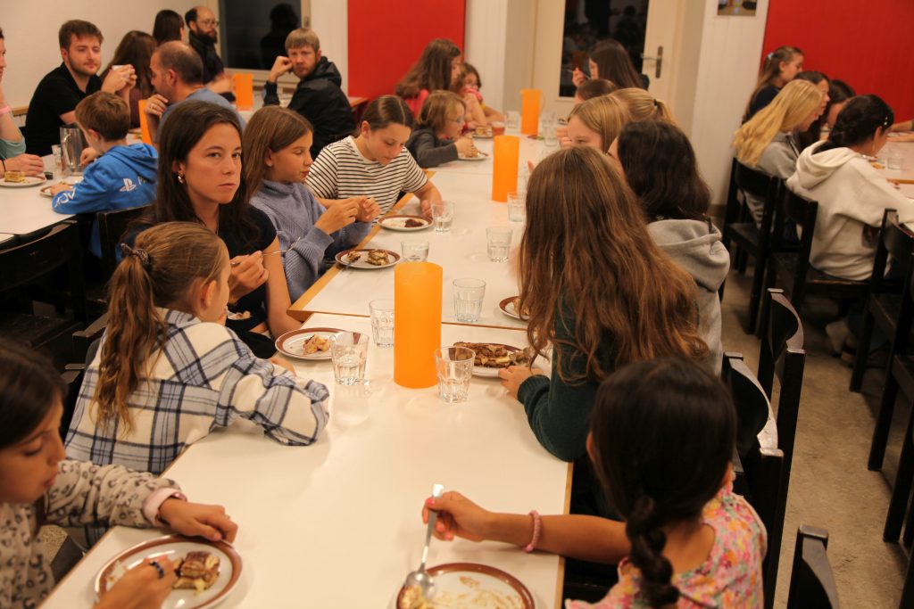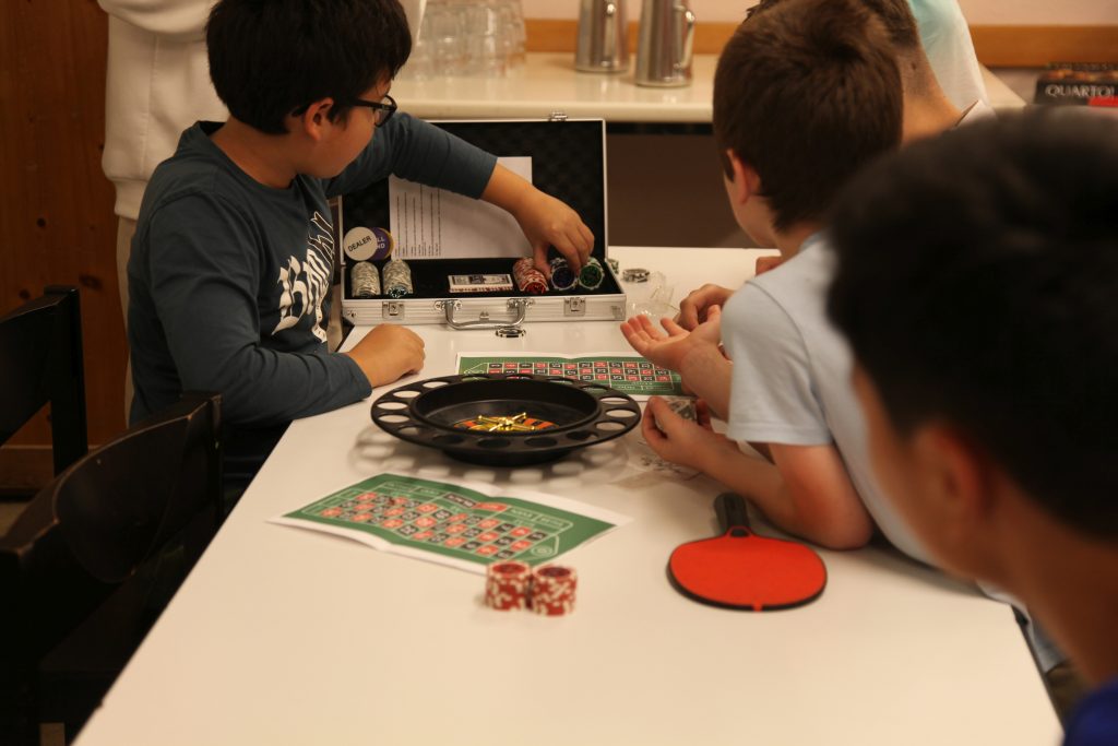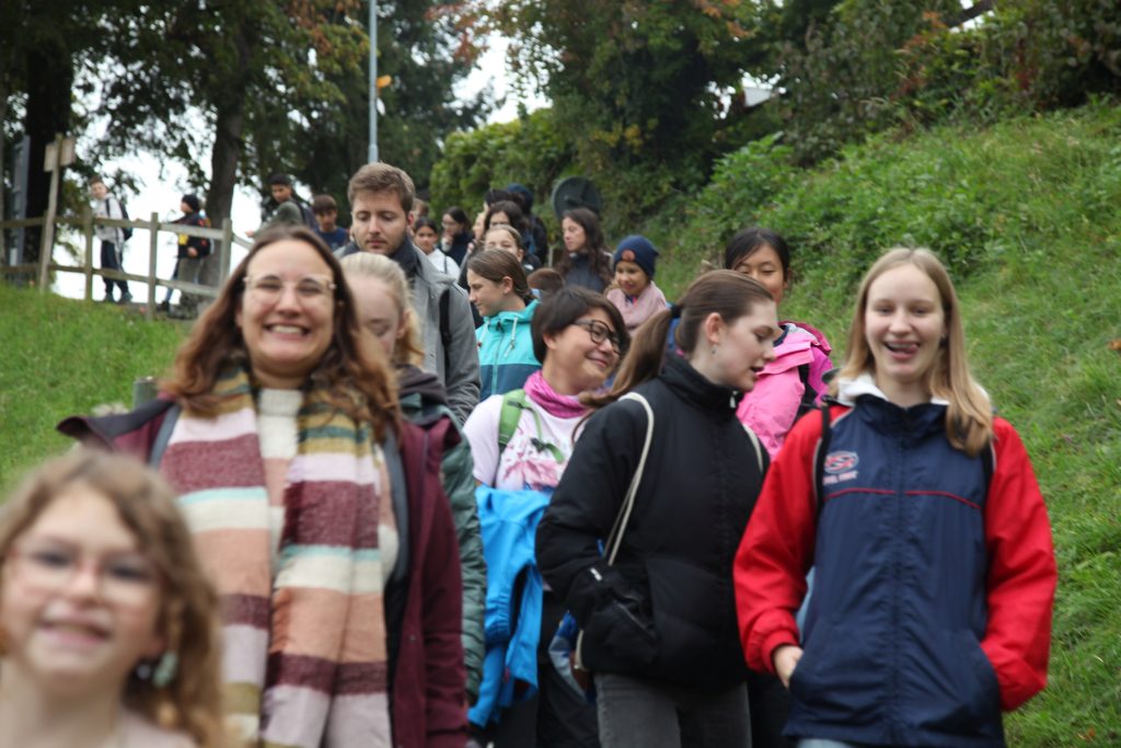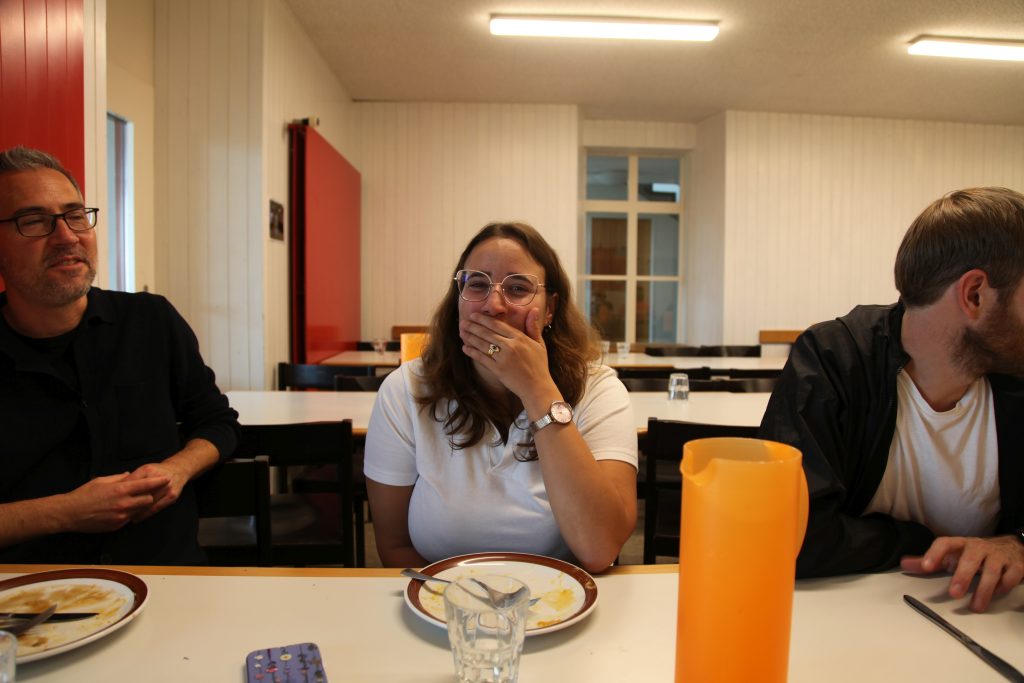 Wie gewohnt um 07:30 ertönte in den Gängen „laute“ Musik. Mit Final Countdown traf sich die 5-köpfige Morgensporttruppe vor dem Haus. Nach dem aufwärmen bevor verschiedene Spiele gespielt wurden, wurde auch „Barti“ die Chef-Ziege und seine Freunde begrüsst. Der musikalische Anfang der Probe wurde wieder mit verschiedenen Songs gestartet bevor die gestern in den Registern erprobten instrumentalen Stücke gemeinsam erarbeitet wurden. Es fügt sich langsam alles zusammen (ihr könnt euch auf den Samstag freuen!). Beim Mittagessen wurden wir mit Kartoffelstock und Fleisch- bzw. Gemüsebällchen verwöhnt. nach der Mittagspause versammelten wir uns mit unseren Instrumenten draussen für das Lagerfoto. Anschliessend gingen wir dann auf einen kleinen Ausflug Richtung Fluss. Auf dem Weg konnten wir die Unterkunft von Bruder Klaus und die Kapelle von Flüeli-Ranft ansehen. Am Fluss wurde dann fleissig Steine gestapelt und herumbalanciert (fast alle blieben trocken). Natürlich durfte auch der Besuch im Kiosk nicht fehlen um Snacks oder Souvenirs zu kaufen. Bis zum Abendessen wurde dann noch fleissig geübt oder Ping-Pong gespielt. Und nicht zu vergessen die ersehnte Handyzeit. Mit einer riesigen Auswahl an Grilliertem und zwei verschiedenen selbstgemachten Tiramisus wurden unsere Bäuche dann beim Abendessen bis oben gefüllt. Danach war der Abend offen für verschiedene Brettspiele, Uno oder Poker. Nachdem das Casino bankrott war, hat man sich dann auch schon wieder für die Nachtruhe vorbereitet. Morgen freuen wir uns auf den zweitletzten Tag des Musiklagers, wieder mit 4 Blöcken Musik.