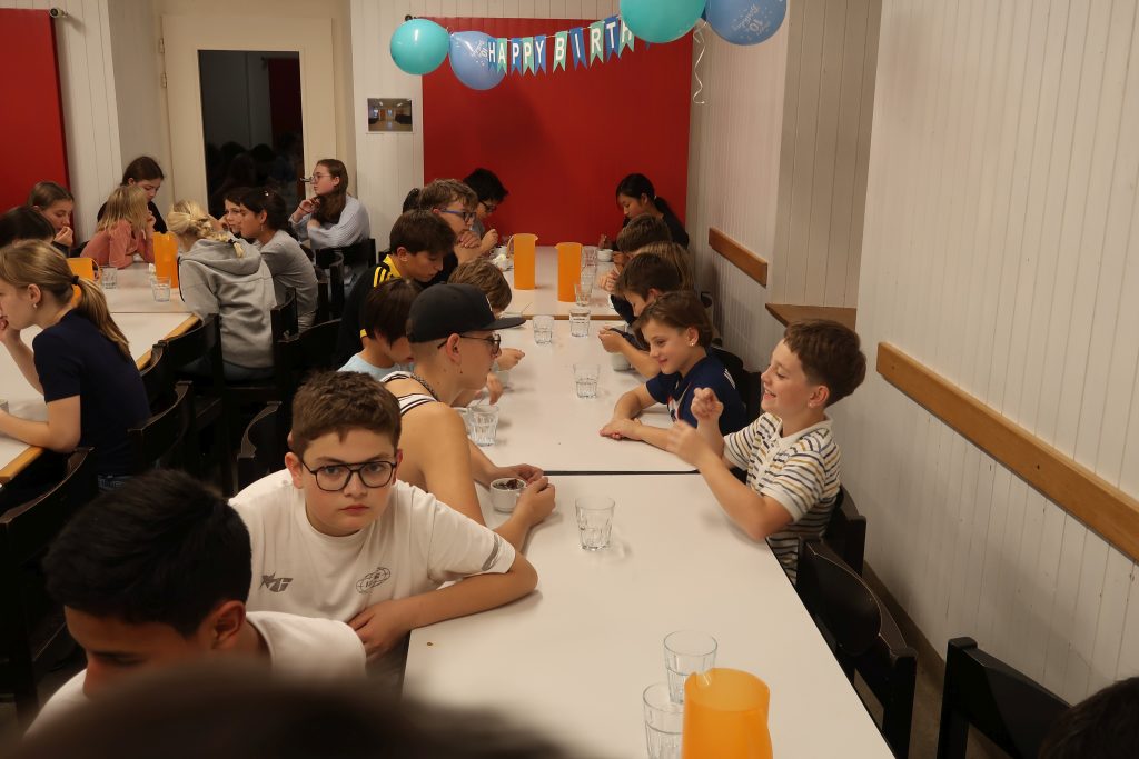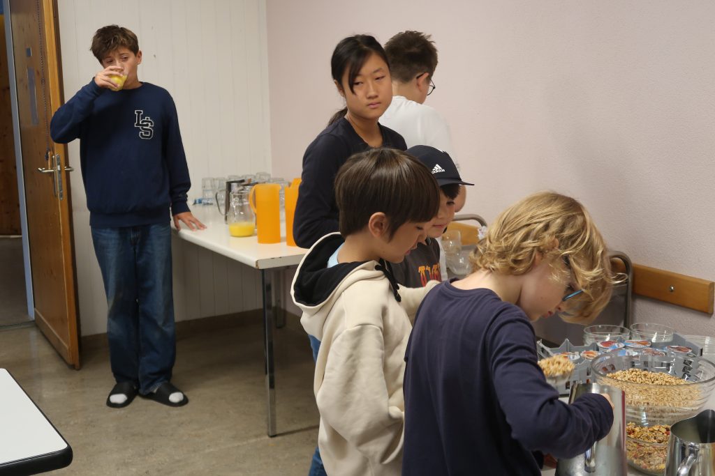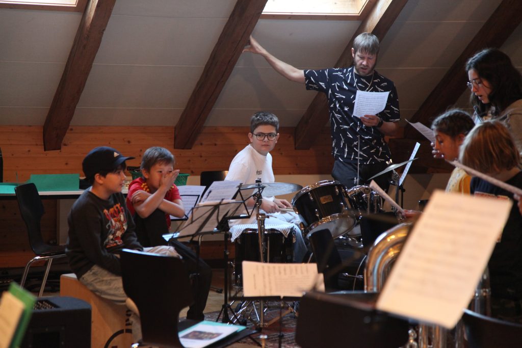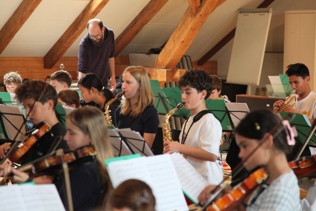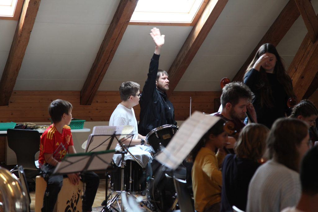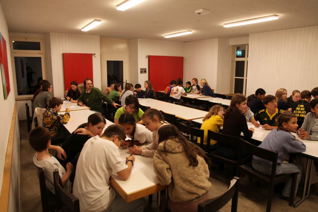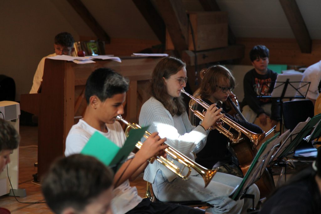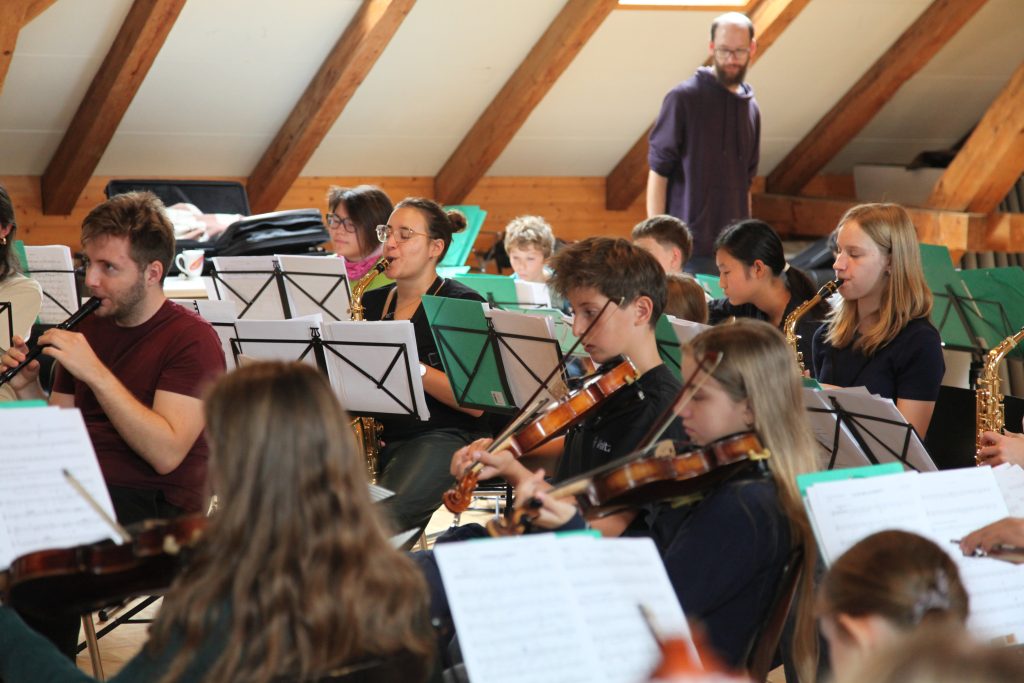 Eine kleinere motivierte Gruppe konnte sich abermals zum Morgensport überzeugen. Mit entspannter Musik wurde der Körper wieder bewegungsfähig gemacht und konnte dann mit poppiger Musik aufgewärmt werden. Das Morgenessen hatte abermals eine breite Auswahl an Optionen. In der Probe konnten die Teilgruppen nach dem Singen, jeweils den anderen präsentieren, was sie erarbeitet haben. Zudem wurde weiter an den gemeinsamen Stücken gearbeitet. Nun haben wir schon ein gutes Repertoire für das Abschlusskonzert aus Gesangs und Instrumentalstücken. Zwei riesige Bleche Käsespätzli mit Brokkoli und Apfelmus wurden uns beim Mittagessen serviert, die alle leer gegessen wurden. Mit gefüllten Bäuchen konnte aber trotzdem noch das kleine Dessert verdrückt werden. Am Nachmittag wurde nochmals kurz zusammengesessen um zu üben, während nachher die Fortgeschrittenen Gruppe ihre separaten Stücke probten und die anderen auf den Schulhausplatz gingen um Basketball, Fussball oder sonst den Kopf zu lüften. Zwei neue Stücke durfte die Fortgeschrittene Gruppe erarbeiten. Nach 20 Minuten war das erste schon gut durchspielbar. Die Probe konnte mit gutem Gewissen ein paar Minuten früher beendet werden. Der Nachmittag neigte sich dem Ende zu und das wunderbare Essen hat gerufen. Mit Lasagne und Caramel-Chöpfli im Magen wurden zuerst die Noten für das Konzert vorbereitet bevor es dann zum Quiz-Duell ging. Viele Songs und Fun Facts wurden erraten. Nach der Rangverkündigung ging es auch schon langsam Richtung Bett. Zzz..