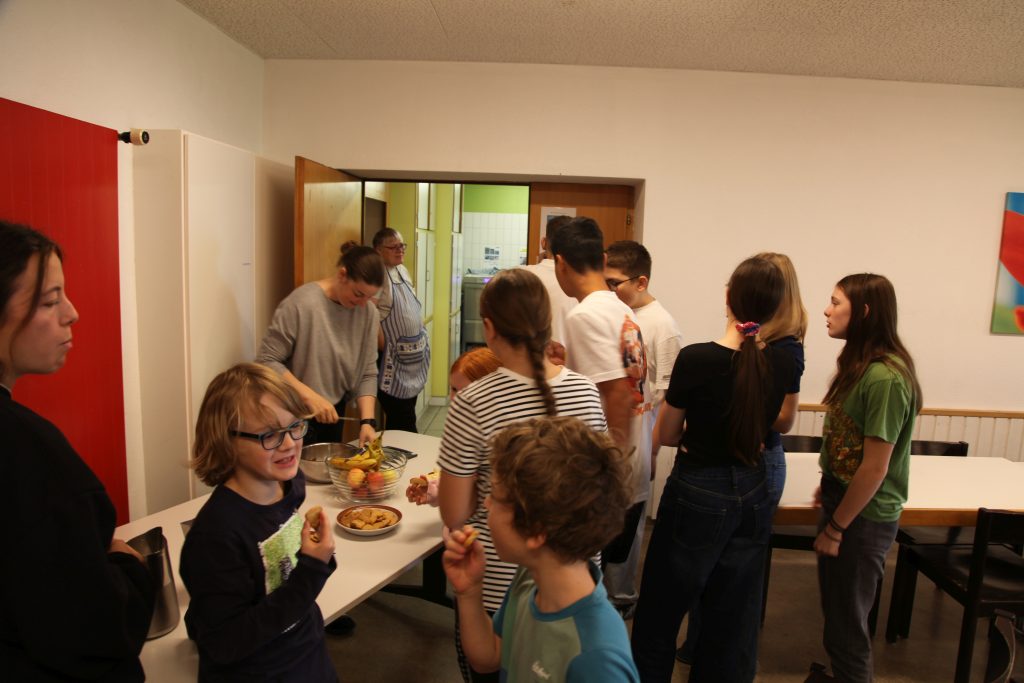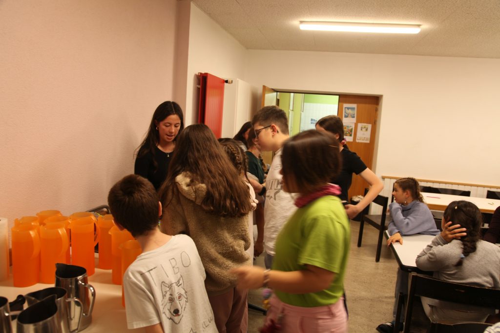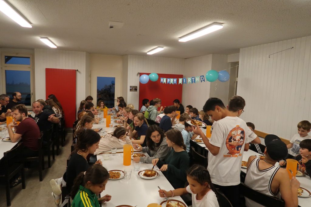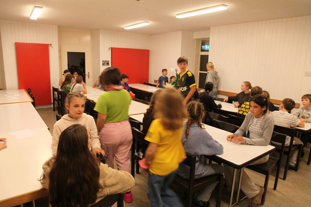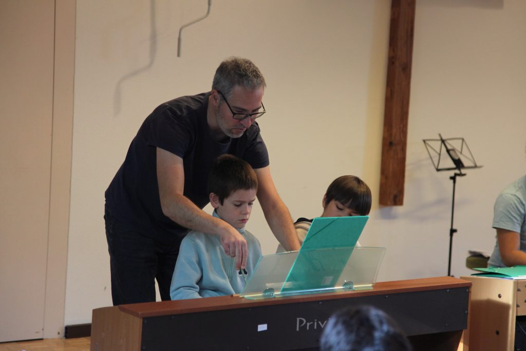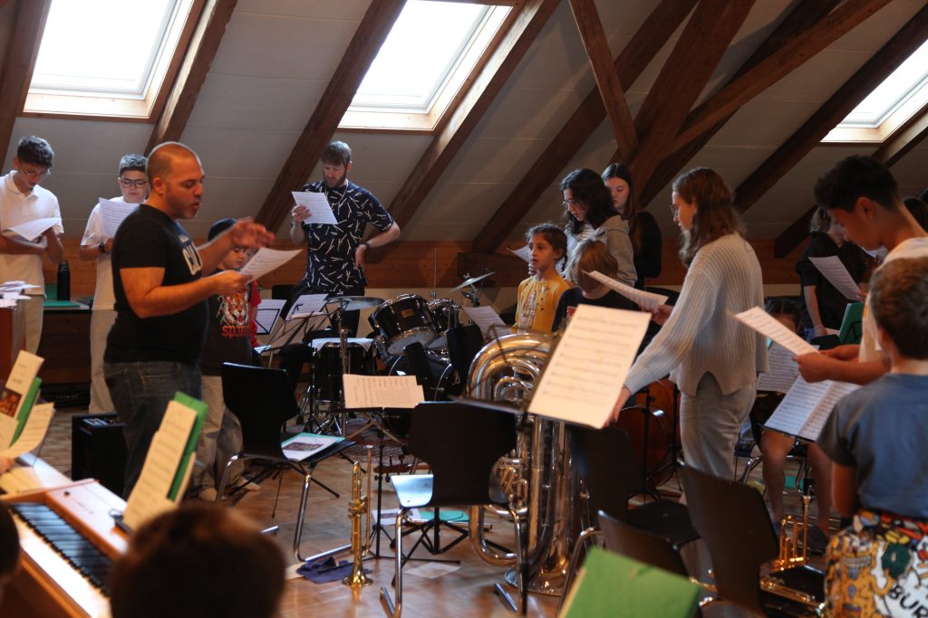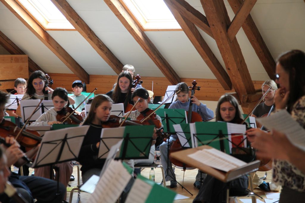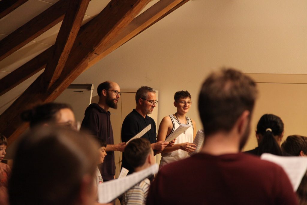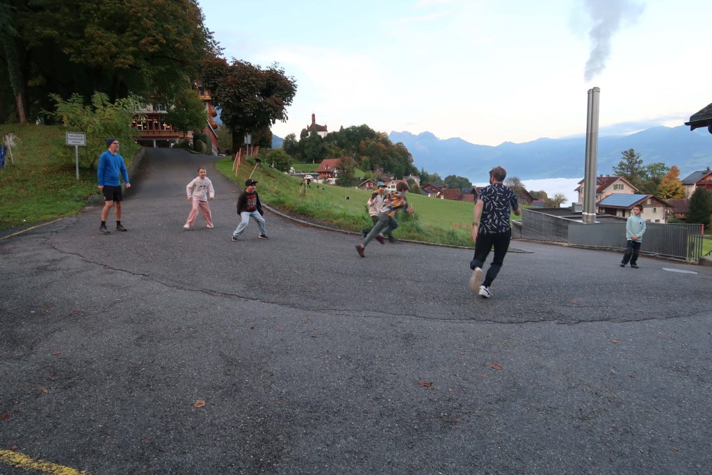 Eine kleinere motivierte Gruppe konnte sich abermals zum Morgensport überzeugen. Mit entspannter Musik wurde der Körper wieder bewegungsfähig gemacht und konnte dann mit poppiger Musik aufgewärmt werden. Das Morgenessen hatte abermals eine breite Auswahl an Optionen. In der Probe konnten die Teilgruppen nach dem Singen, jeweils den anderen präsentieren, was sie erarbeitet haben. Zudem wurde weiter an den gemeinsamen Stücken gearbeitet. Nun haben wir schon ein gutes Repertoire für das Abschlusskonzert aus Gesangs und Instrumentalstücken. Zwei riesige Bleche Käsespätzli mit Brokkoli und Apfelmus wurden uns beim Mittagessen serviert, die alle leer gegessen wurden. Mit gefüllten Bäuchen konnte aber trotzdem noch das kleine Dessert verdrückt werden. Am Nachmittag wurde nochmals kurz zusammengesessen um zu üben, während nachher die Fortgeschrittenen Gruppe ihre separaten Stücke probten und die anderen auf den Schulhausplatz gingen um Basketball, Fussball oder sonst den Kopf zu lüften. Zwei neue Stücke durfte die Fortgeschrittene Gruppe erarbeiten. Nach 20 Minuten war das erste schon gut durchspielbar. Die Probe konnte mit gutem Gewissen ein paar Minuten früher beendet werden. Der Nachmittag neigte sich dem Ende zu und das wunderbare Essen hat gerufen. Mit Lasagne und Caramel-Chöpfli im Magen wurden zuerst die Noten für das Konzert vorbereitet bevor es dann zum Quiz-Duell ging. Viele Songs und Fun Facts wurden erraten. Nach der Rangverkündigung ging es auch schon langsam Richtung Bett. Zzz..