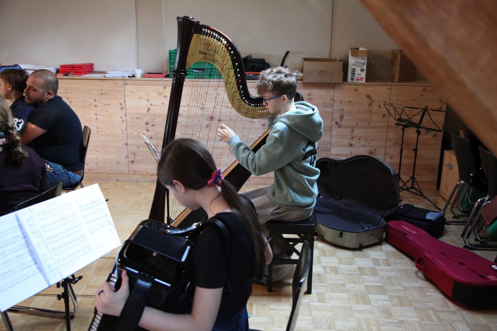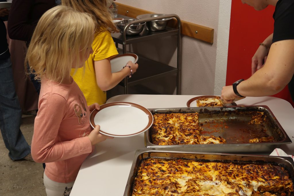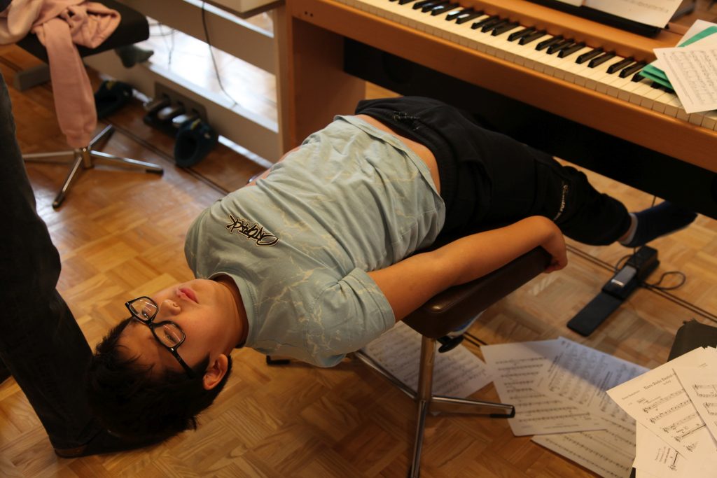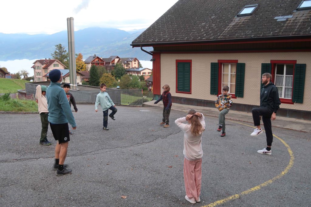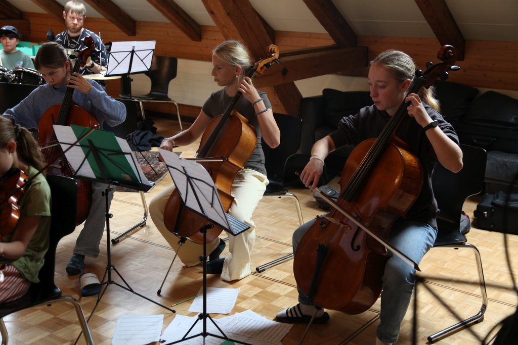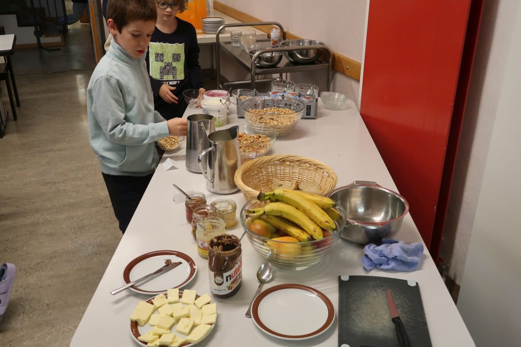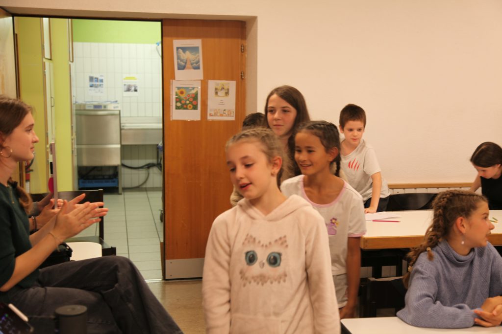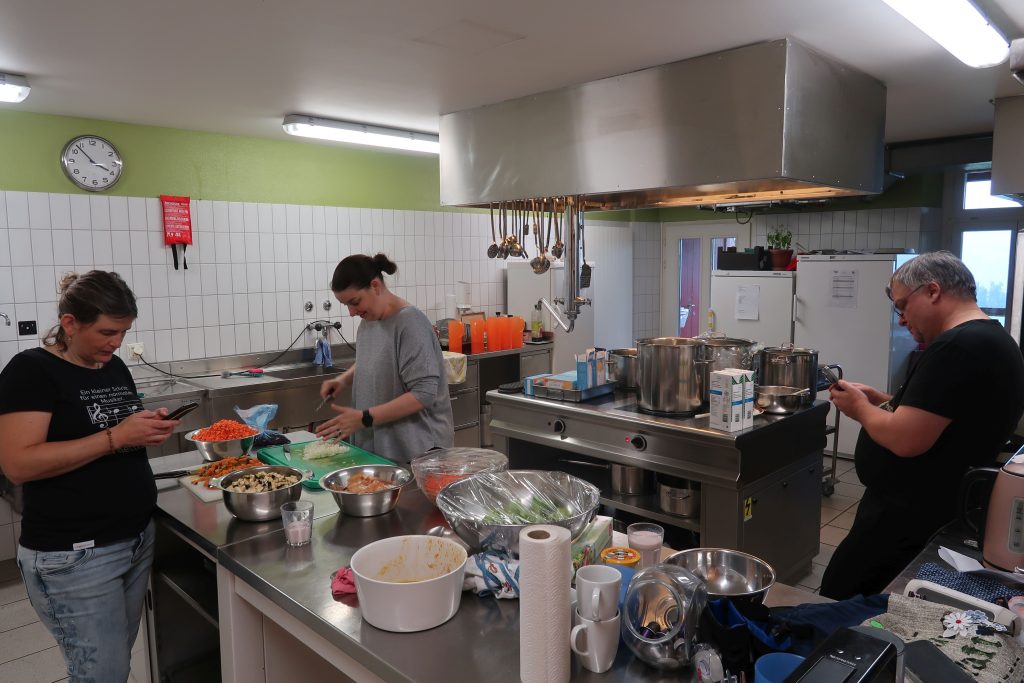 Eine kleinere motivierte Gruppe konnte sich abermals zum Morgensport überzeugen. Mit entspannter Musik wurde der Körper wieder bewegungsfähig gemacht und konnte dann mit poppiger Musik aufgewärmt werden. Das Morgenessen hatte abermals eine breite Auswahl an Optionen. In der Probe konnten die Teilgruppen nach dem Singen, jeweils den anderen präsentieren, was sie erarbeitet haben. Zudem wurde weiter an den gemeinsamen Stücken gearbeitet. Nun haben wir schon ein gutes Repertoire für das Abschlusskonzert aus Gesangs und Instrumentalstücken. Zwei riesige Bleche Käsespätzli mit Brokkoli und Apfelmus wurden uns beim Mittagessen serviert, die alle leer gegessen wurden. Mit gefüllten Bäuchen konnte aber trotzdem noch das kleine Dessert verdrückt werden. Am Nachmittag wurde nochmals kurz zusammengesessen um zu üben, während nachher die Fortgeschrittenen Gruppe ihre separaten Stücke probten und die anderen auf den Schulhausplatz gingen um Basketball, Fussball oder sonst den Kopf zu lüften. Zwei neue Stücke durfte die Fortgeschrittene Gruppe erarbeiten. Nach 20 Minuten war das erste schon gut durchspielbar. Die Probe konnte mit gutem Gewissen ein paar Minuten früher beendet werden. Der Nachmittag neigte sich dem Ende zu und das wunderbare Essen hat gerufen. Mit Lasagne und Caramel-Chöpfli im Magen wurden zuerst die Noten für das Konzert vorbereitet bevor es dann zum Quiz-Duell ging. Viele Songs und Fun Facts wurden erraten. Nach der Rangverkündigung ging es auch schon langsam Richtung Bett. Zzz..