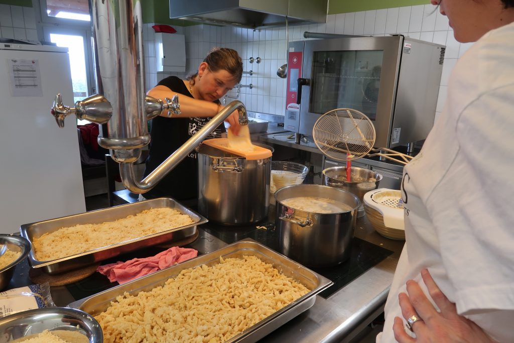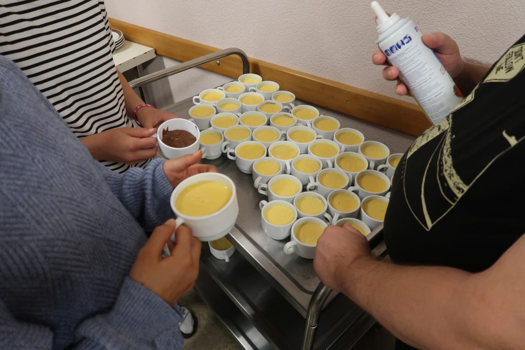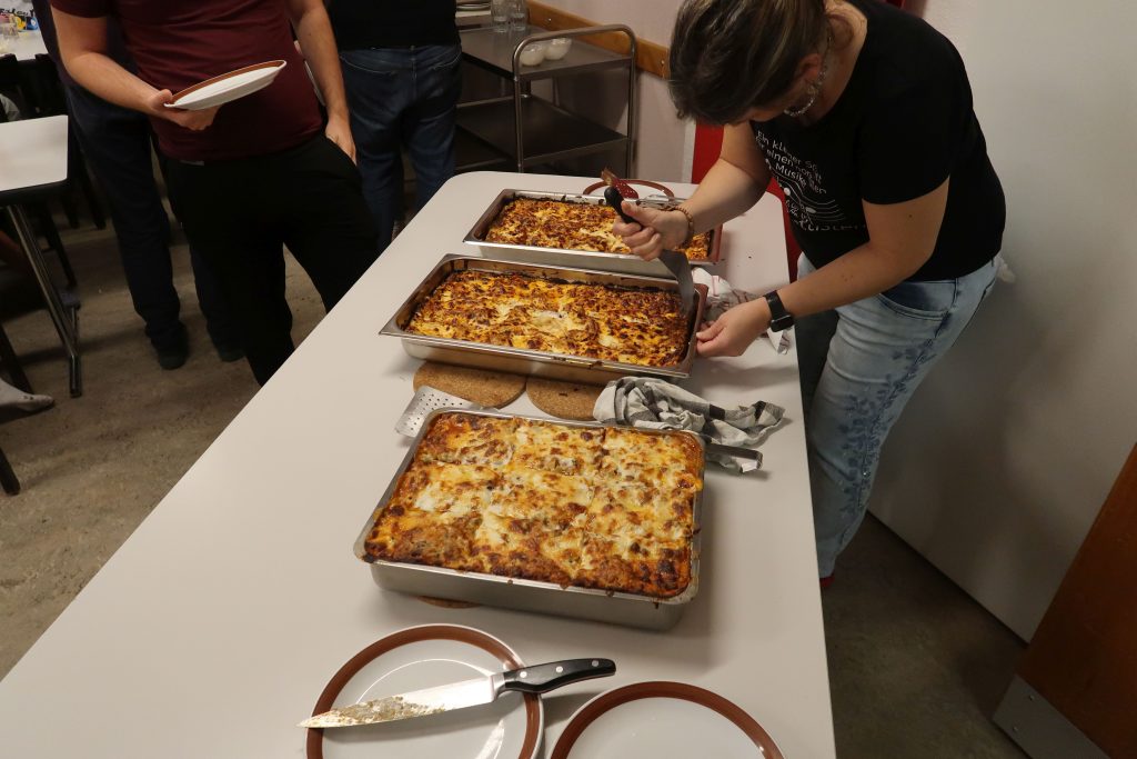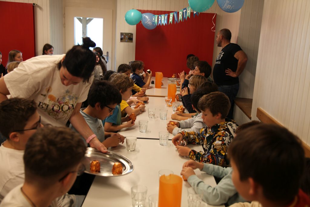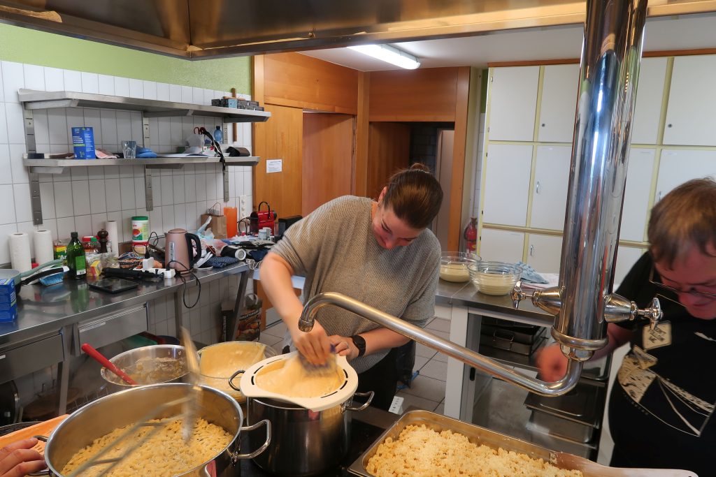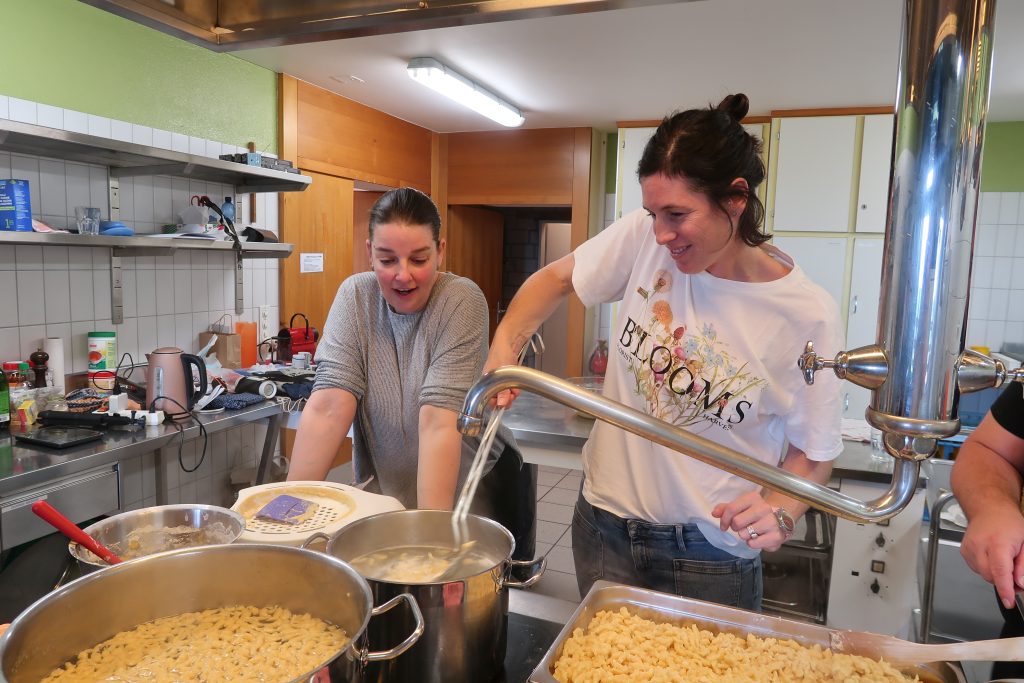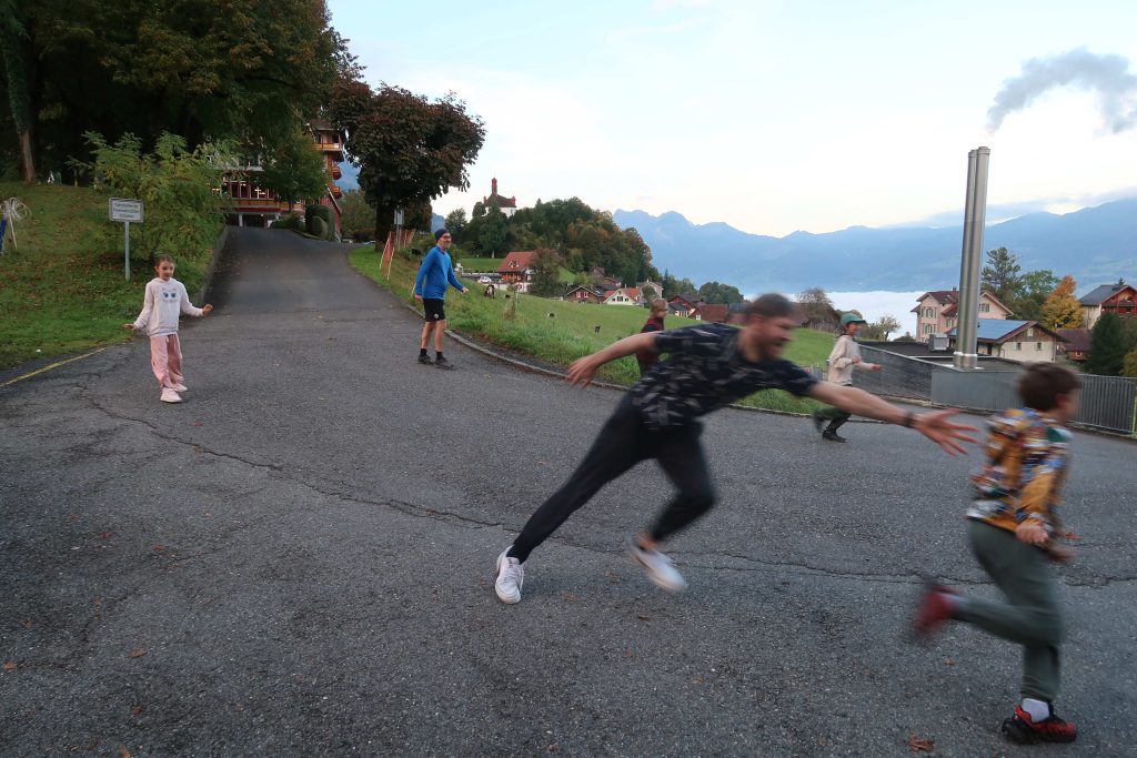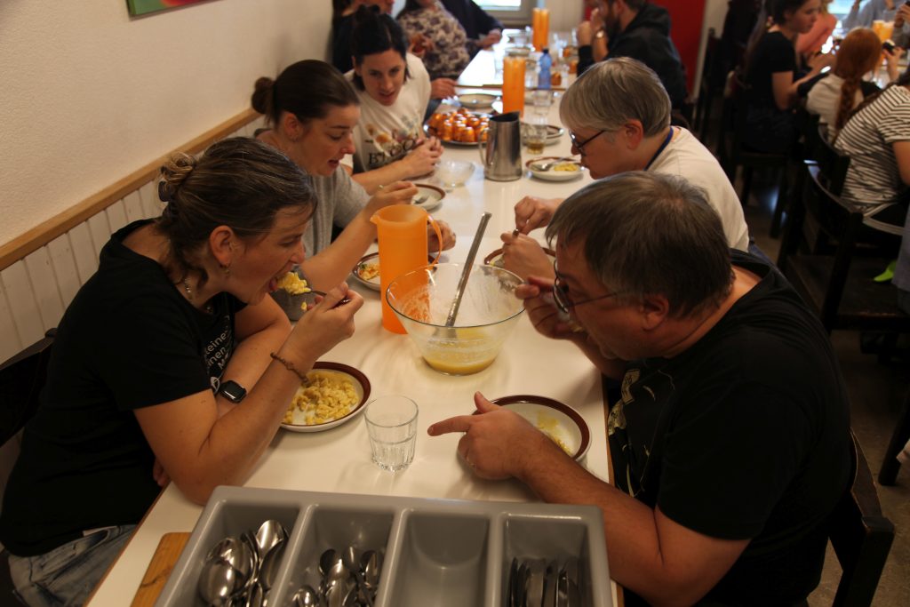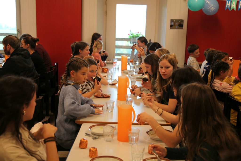 Eine kleinere motivierte Gruppe konnte sich abermals zum Morgensport überzeugen. Mit entspannter Musik wurde der Körper wieder bewegungsfähig gemacht und konnte dann mit poppiger Musik aufgewärmt werden. Das Morgenessen hatte abermals eine breite Auswahl an Optionen. In der Probe konnten die Teilgruppen nach dem Singen, jeweils den anderen präsentieren, was sie erarbeitet haben. Zudem wurde weiter an den gemeinsamen Stücken gearbeitet. Nun haben wir schon ein gutes Repertoire für das Abschlusskonzert aus Gesangs und Instrumentalstücken. Zwei riesige Bleche Käsespätzli mit Brokkoli und Apfelmus wurden uns beim Mittagessen serviert, die alle leer gegessen wurden. Mit gefüllten Bäuchen konnte aber trotzdem noch das kleine Dessert verdrückt werden. Am Nachmittag wurde nochmals kurz zusammengesessen um zu üben, während nachher die Fortgeschrittenen Gruppe ihre separaten Stücke probten und die anderen auf den Schulhausplatz gingen um Basketball, Fussball oder sonst den Kopf zu lüften. Zwei neue Stücke durfte die Fortgeschrittene Gruppe erarbeiten. Nach 20 Minuten war das erste schon gut durchspielbar. Die Probe konnte mit gutem Gewissen ein paar Minuten früher beendet werden. Der Nachmittag neigte sich dem Ende zu und das wunderbare Essen hat gerufen. Mit Lasagne und Caramel-Chöpfli im Magen wurden zuerst die Noten für das Konzert vorbereitet bevor es dann zum Quiz-Duell ging. Viele Songs und Fun Facts wurden erraten. Nach der Rangverkündigung ging es auch schon langsam Richtung Bett. Zzz..