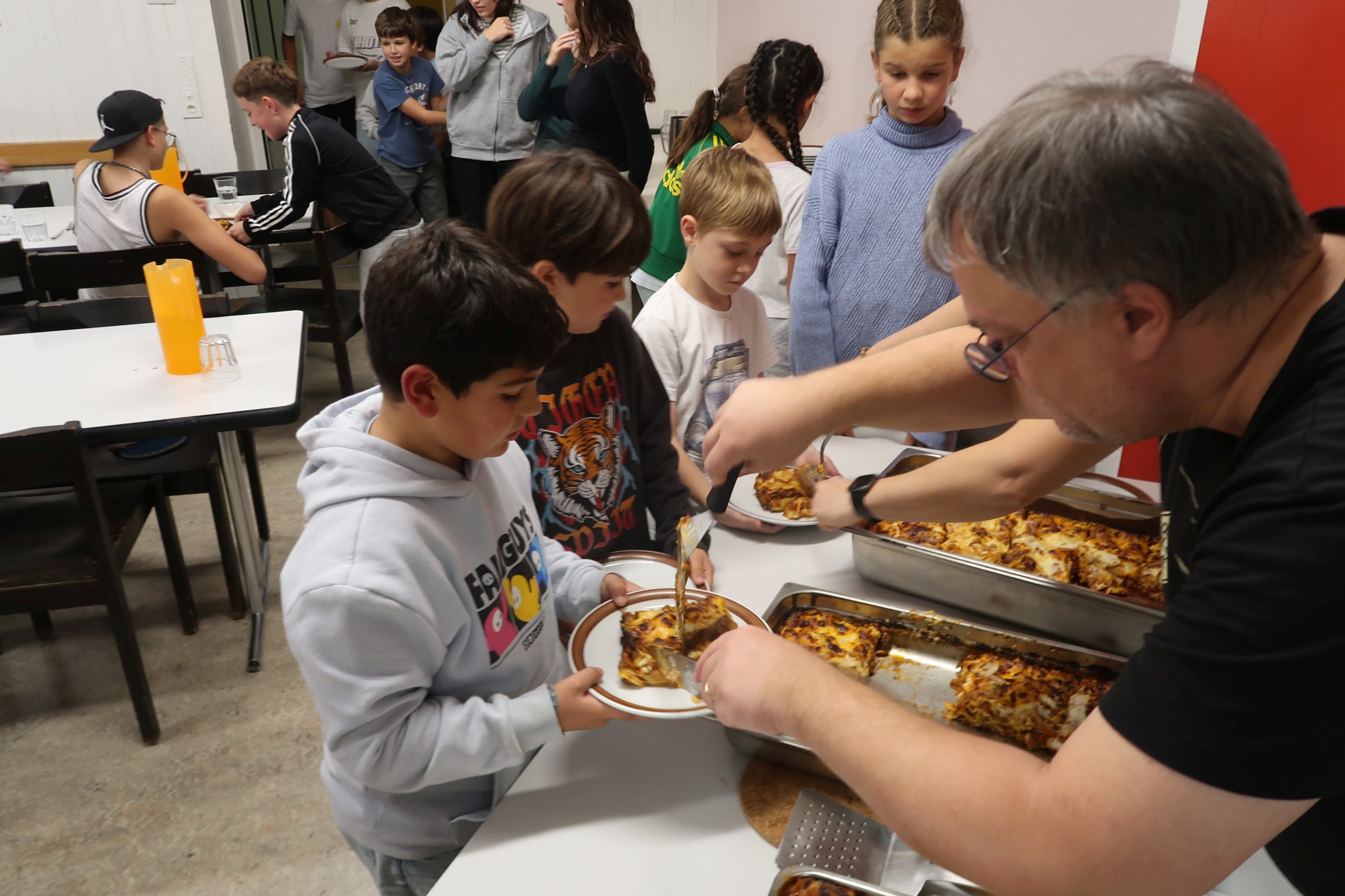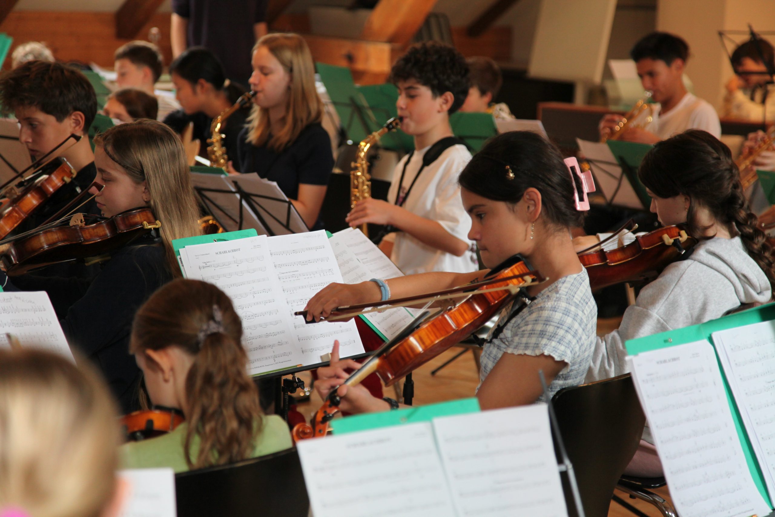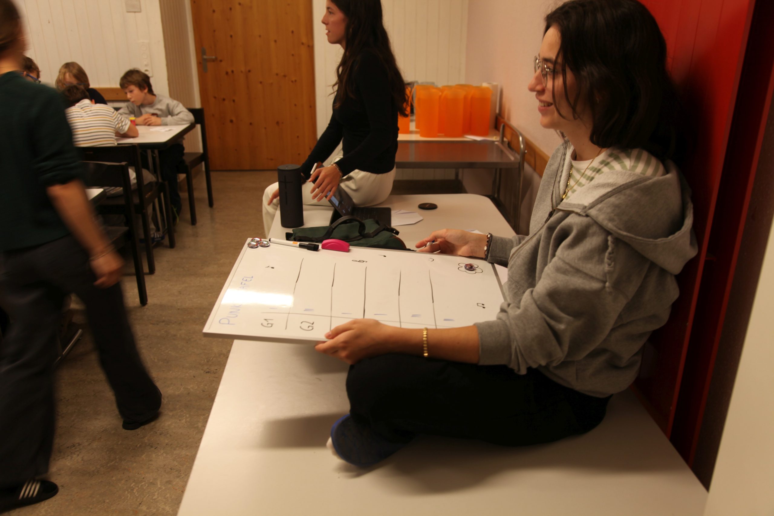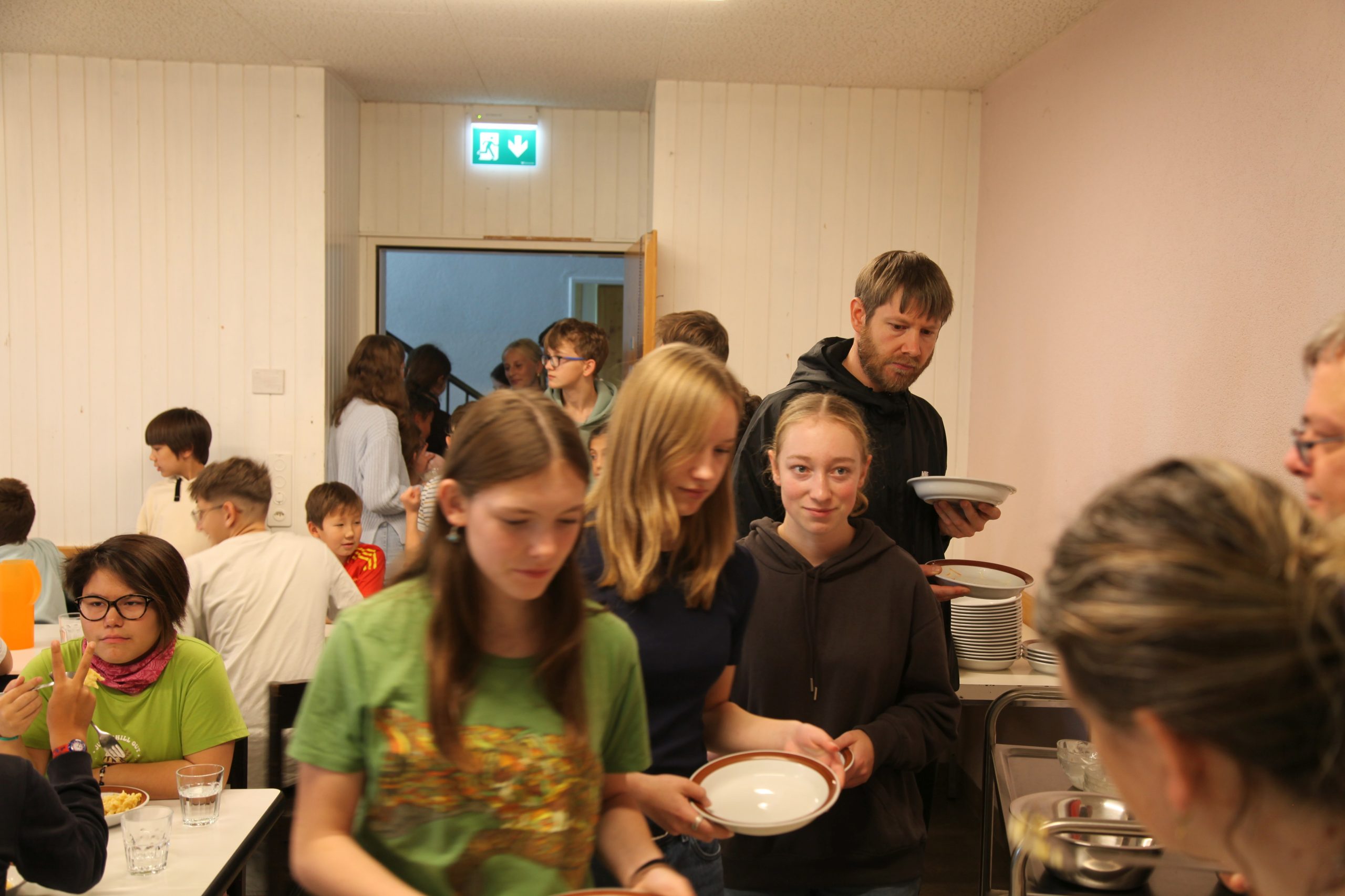 Eine kleinere motivierte Gruppe konnte sich abermals zum Morgensport überzeugen. Mit entspannter Musik wurde der Körper wieder bewegungsfähig gemacht und konnte dann mit poppiger Musik aufgewärmt werden. Das Morgenessen hatte abermals eine breite Auswahl an Optionen. In der Probe konnten die Teilgruppen nach dem Singen, jeweils den anderen präsentieren, was sie erarbeitet haben. Zudem wurde weiter an den gemeinsamen Stücken gearbeitet. Nun haben wir schon ein gutes Repertoire für das Abschlusskonzert aus Gesangs und Instrumentalstücken. Zwei riesige Bleche Käsespätzli mit Brokkoli und Apfelmus wurden uns beim Mittagessen serviert, die alle leer gegessen wurden. Mit gefüllten Bäuchen konnte aber trotzdem noch das kleine Dessert verdrückt werden. Am Nachmittag wurde nochmals kurz zusammengesessen um zu üben, während nachher die Fortgeschrittenen Gruppe ihre separaten Stücke probten und die anderen auf den Schulhausplatz gingen um Basketball, Fussball oder sonst den Kopf zu lüften. Zwei neue Stücke durfte die Fortgeschrittene Gruppe erarbeiten. Nach 20 Minuten war das erste schon gut durchspielbar. Die Probe konnte mit gutem Gewissen ein paar Minuten früher beendet werden. Der Nachmittag neigte sich dem Ende zu und das wunderbare Essen hat gerufen. Mit Lasagne und Caramel-Chöpfli im Magen wurden zuerst die Noten für das Konzert vorbereitet bevor es dann zum Quiz-Duell ging. Viele Songs und Fun Facts wurden erraten. Nach der Rangverkündigung ging es auch schon langsam Richtung Bett. Zzz..