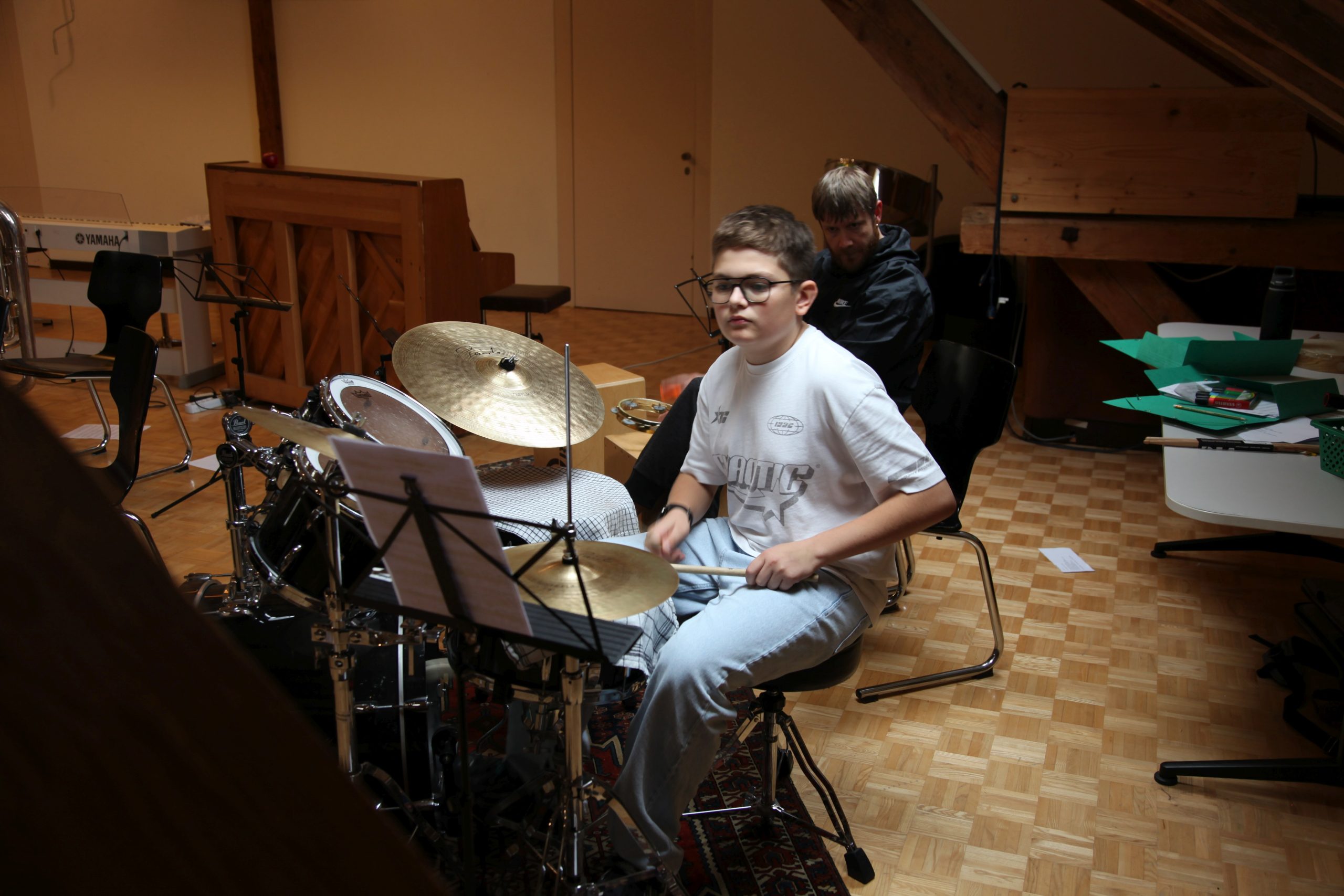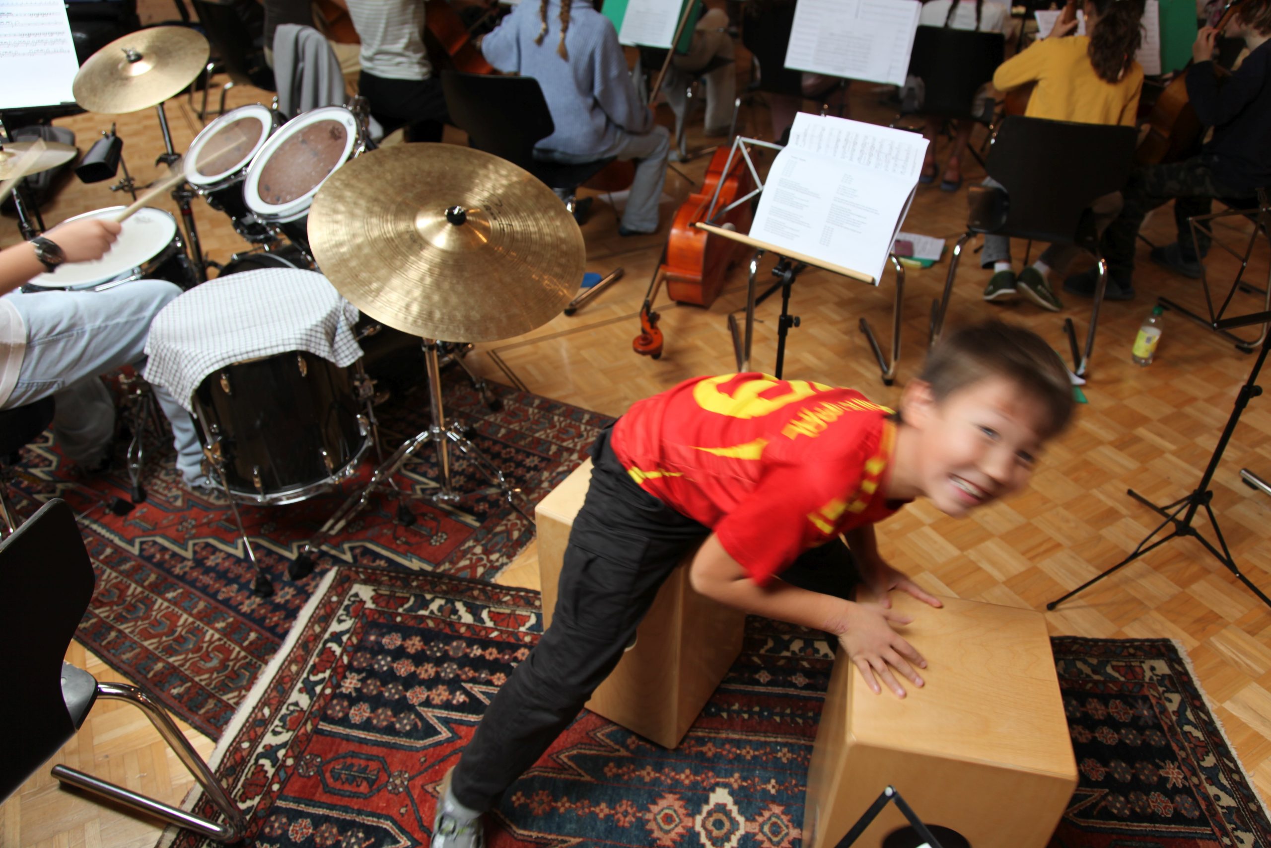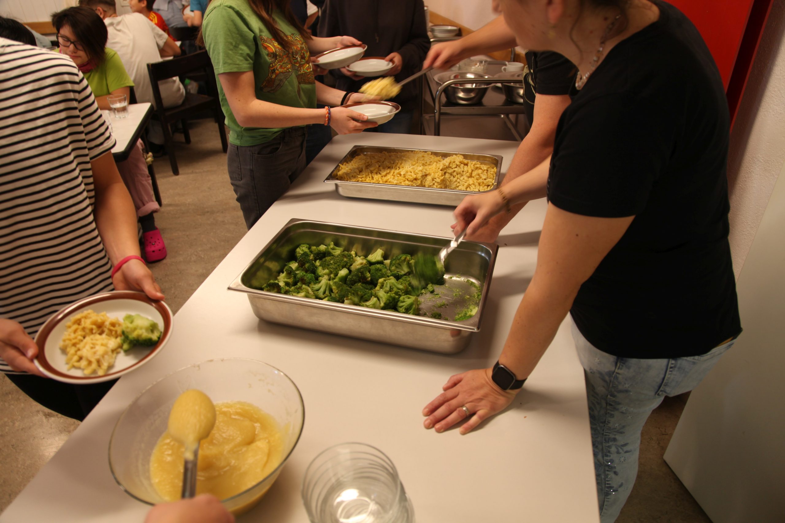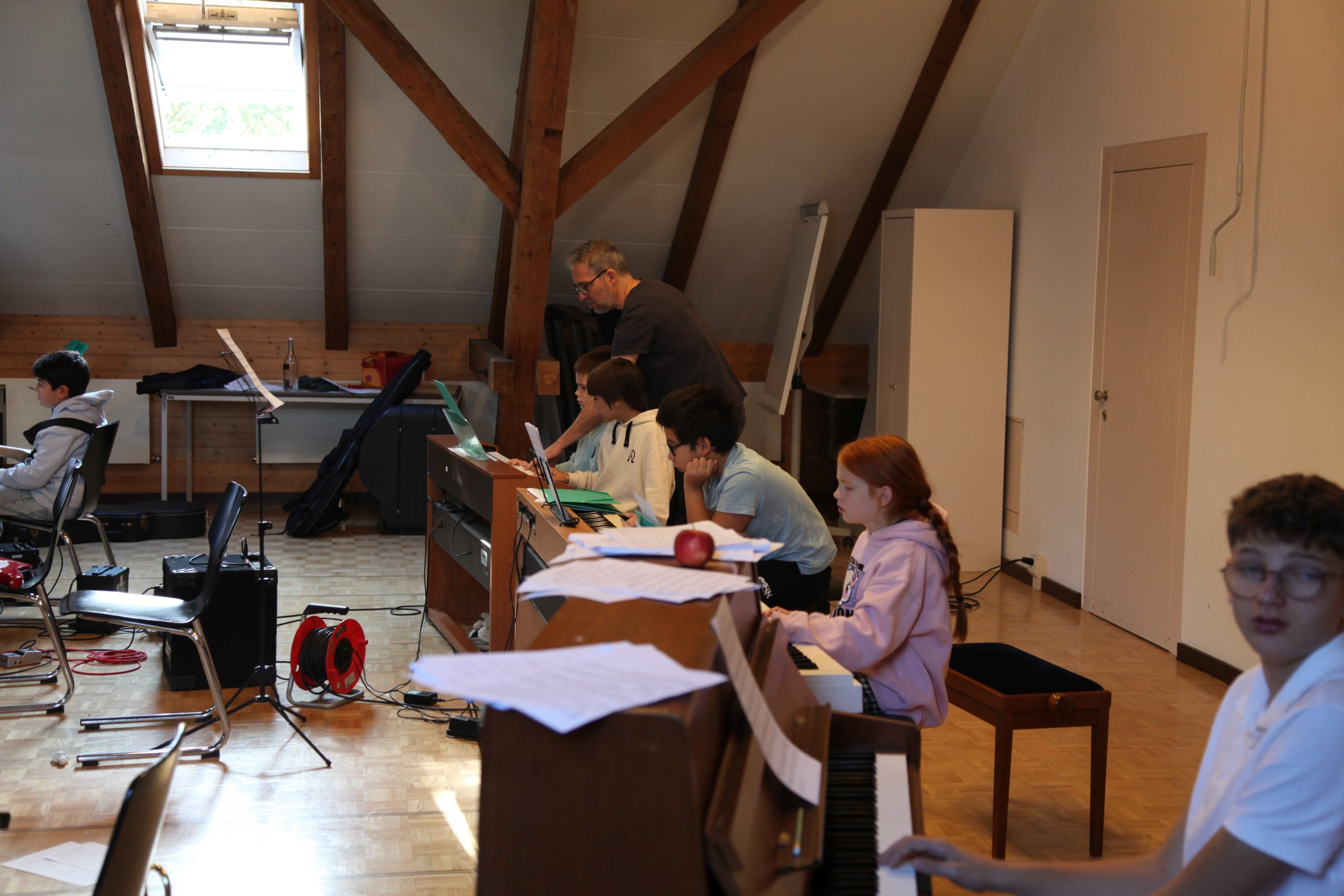 Eine kleinere motivierte Gruppe konnte sich abermals zum Morgensport überzeugen. Mit entspannter Musik wurde der Körper wieder bewegungsfähig gemacht und konnte dann mit poppiger Musik aufgewärmt werden. Das Morgenessen hatte abermals eine breite Auswahl an Optionen. In der Probe konnten die Teilgruppen nach dem Singen, jeweils den anderen präsentieren, was sie erarbeitet haben. Zudem wurde weiter an den gemeinsamen Stücken gearbeitet. Nun haben wir schon ein gutes Repertoire für das Abschlusskonzert aus Gesangs und Instrumentalstücken. Zwei riesige Bleche Käsespätzli mit Brokkoli und Apfelmus wurden uns beim Mittagessen serviert, die alle leer gegessen wurden. Mit gefüllten Bäuchen konnte aber trotzdem noch das kleine Dessert verdrückt werden. Am Nachmittag wurde nochmals kurz zusammengesessen um zu üben, während nachher die Fortgeschrittenen Gruppe ihre separaten Stücke probten und die anderen auf den Schulhausplatz gingen um Basketball, Fussball oder sonst den Kopf zu lüften. Zwei neue Stücke durfte die Fortgeschrittene Gruppe erarbeiten. Nach 20 Minuten war das erste schon gut durchspielbar. Die Probe konnte mit gutem Gewissen ein paar Minuten früher beendet werden. Der Nachmittag neigte sich dem Ende zu und das wunderbare Essen hat gerufen. Mit Lasagne und Caramel-Chöpfli im Magen wurden zuerst die Noten für das Konzert vorbereitet bevor es dann zum Quiz-Duell ging. Viele Songs und Fun Facts wurden erraten. Nach der Rangverkündigung ging es auch schon langsam Richtung Bett. Zzz..
